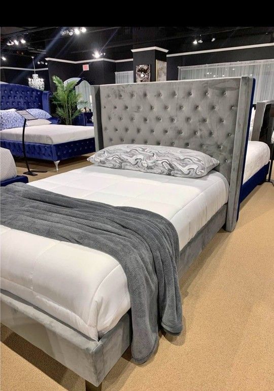 Modern style queen bed frame 👉👉$359 👉NOW! (Originally $500) Available King Black, grey, blue 🙋‍♂️👉SLEEP WELL FURNITURE 4040 W CRAIG RD LAS VEGAS Open 10-7pm Hablamos Español 👉We offer Financing💲 Take home it Home 👉$50 DOWN No credit required, Zero interest up to 120 days Select from Koalofi, Acima, Kornerstone, Kafene finance. Furniture Sectional Sofa Queen King Mattress Bedroom Bunk beds Dining table sets