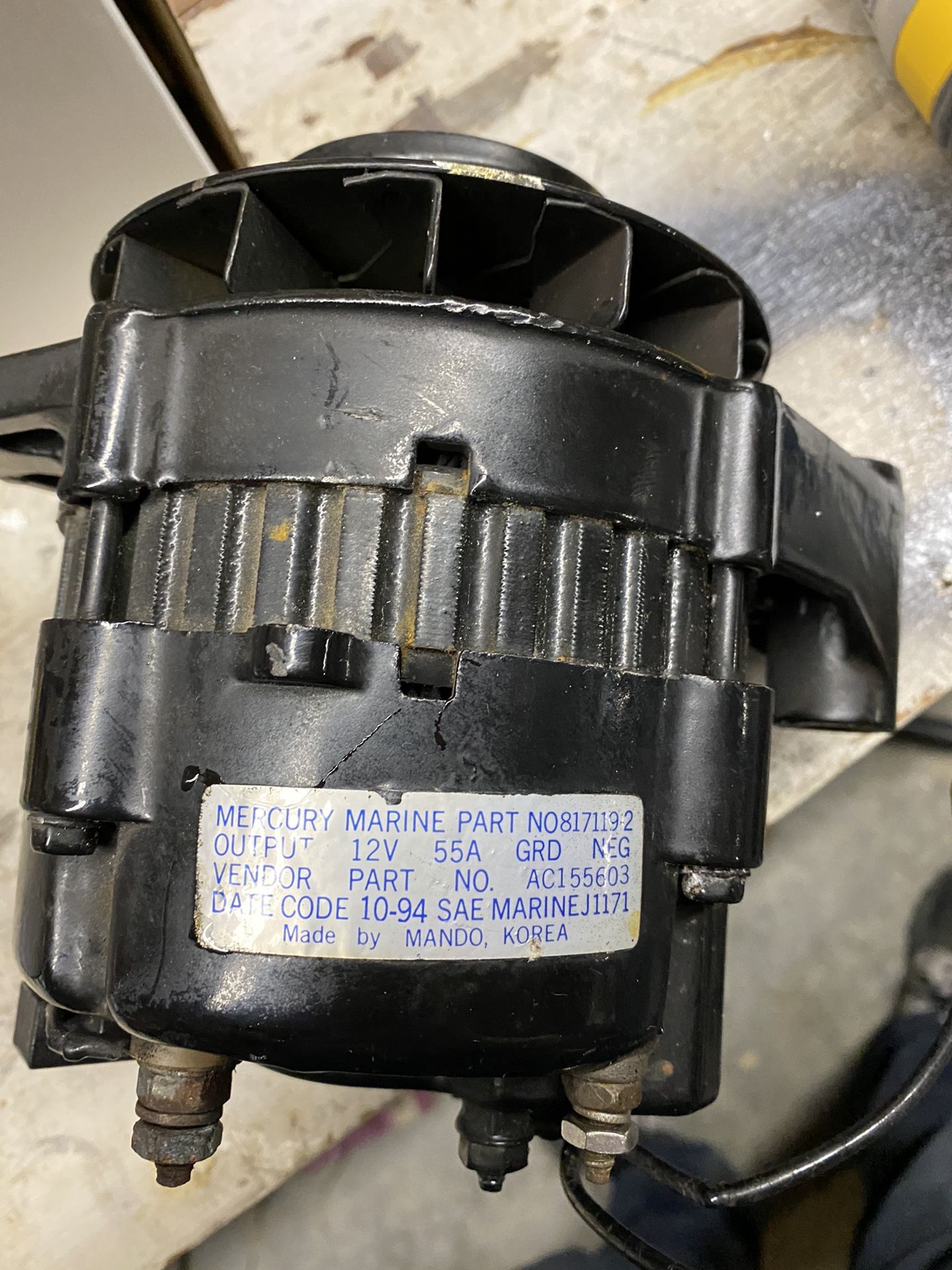 Mercury Marine Alternator good condition. It was a spare for a boat I no longer have. These are $175 new
