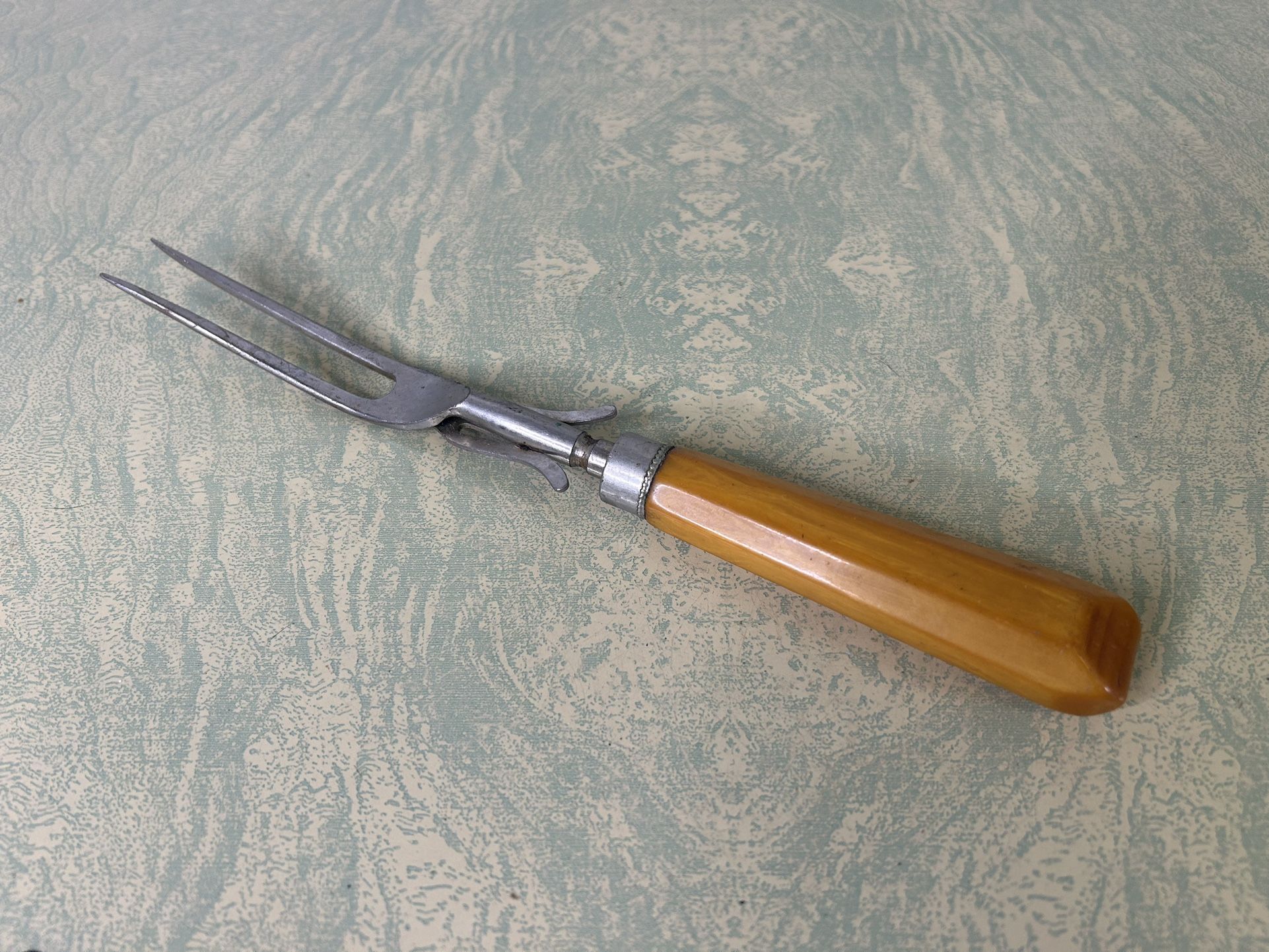 Vintage Bakelite MCM meat steak fork. Please refer to photos for condition and measurement. Local pickup