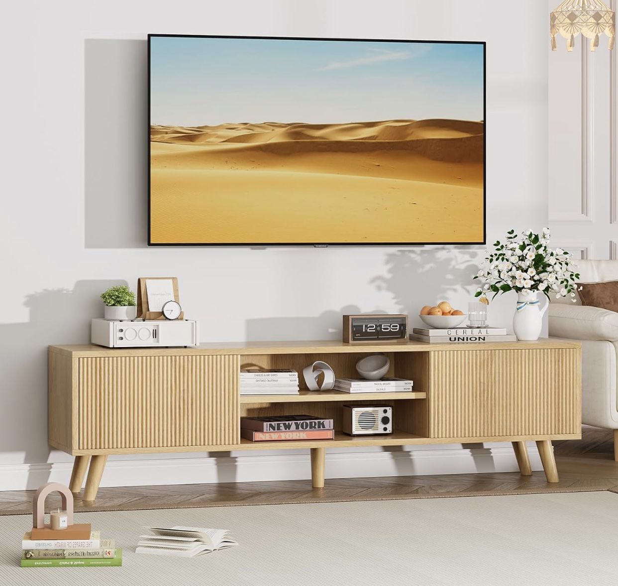 TV Stand for TVs Up to 75 Inches, Boho Entertainment Center Wood TV Stand