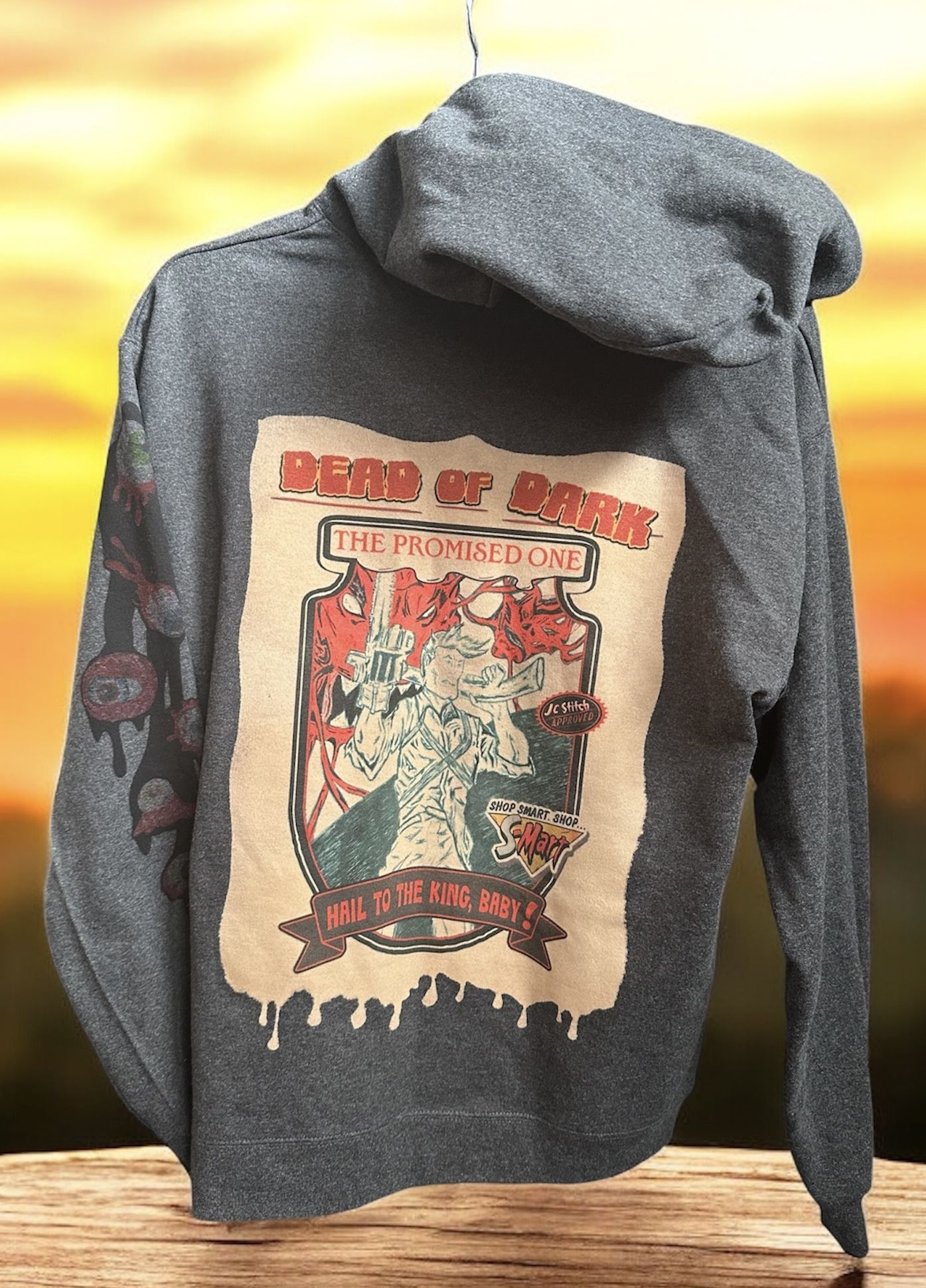 New. Original hoodie by Dead Of Dark Designs. Title: The Promised One Color: Charcoal Heather Choose your size: M, L, XL, L His epic tale will never die. Custom hand drawn art hoodie. First bleached to uncover the hoodies raw color then a sublimation of awesomeness to bring it to life.