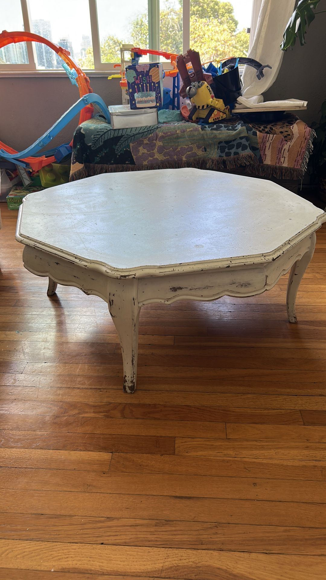 34in diameter, 15in high, has some marks from kids stickers but easy to get that removed.