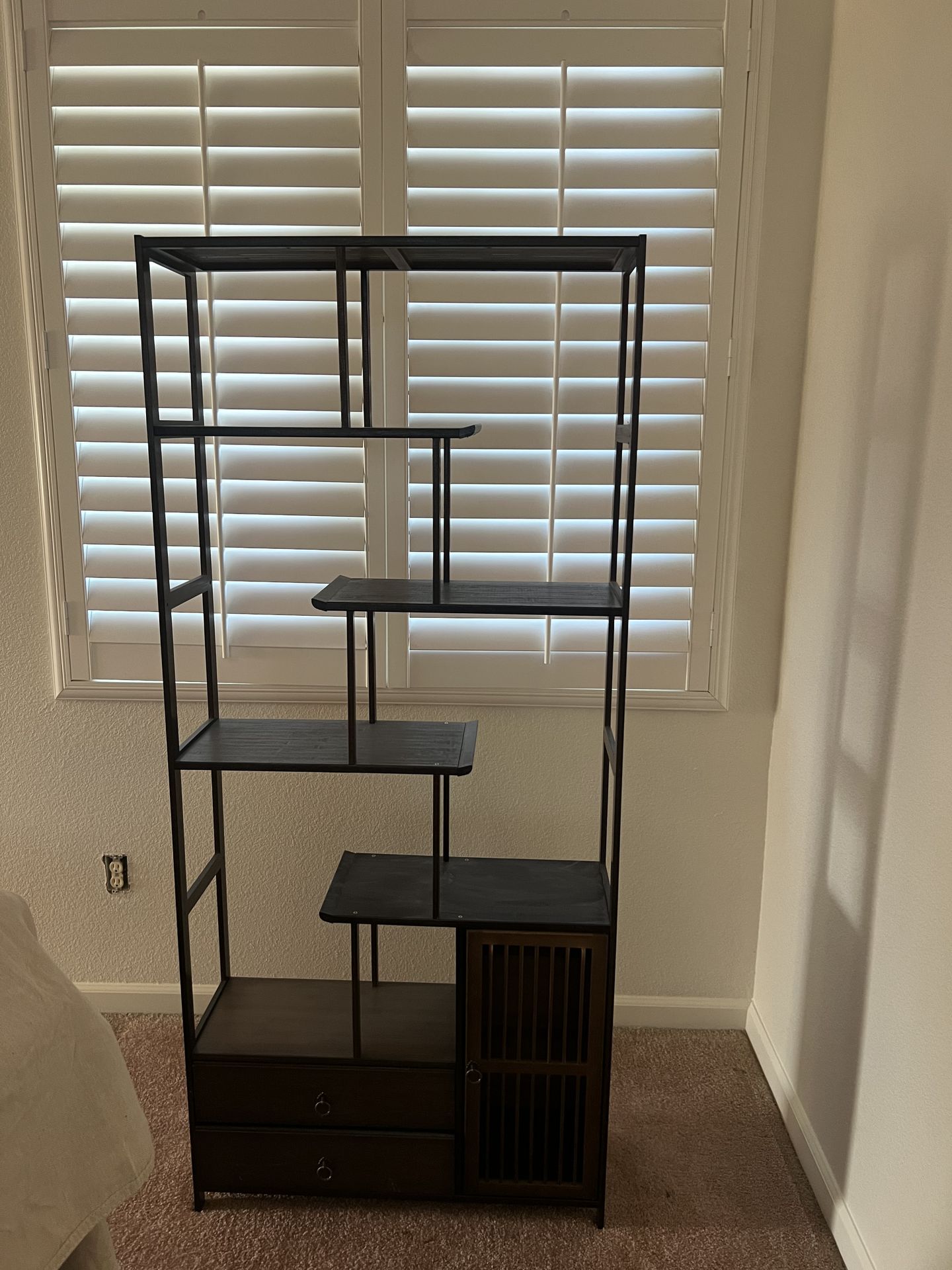 Light weight Located in West Sacramento One of the bottom drawer can get a little stuck at times but works fine L 30 1/2 W 10 H 68 3/4