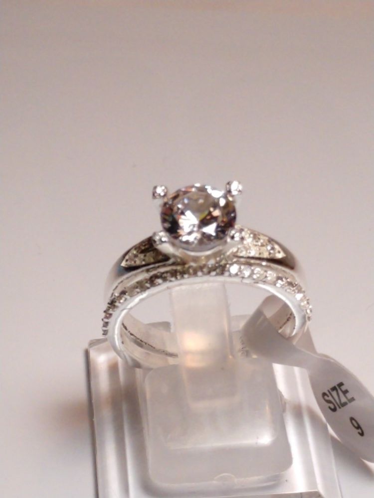 Pretty Cubic Zirconia Wedding Set 2 rings Set in Sterling Silver PL.925 Size 9
