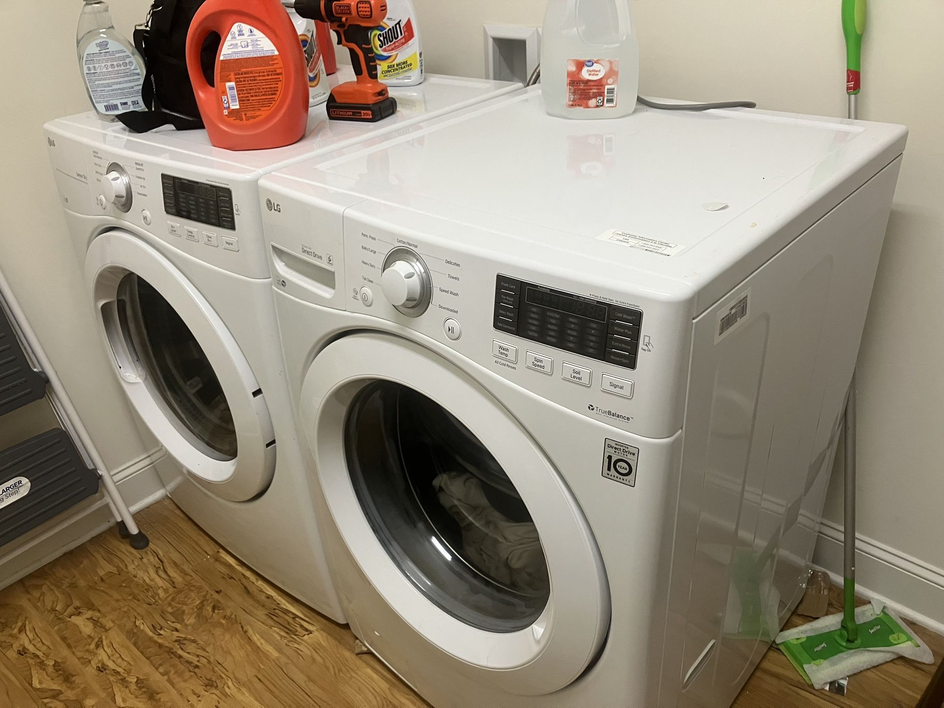 1. LG front loading washer & dyer ( excellent condition) - $550 2. Sofa(3 seater) + Love seat (2 seater)-$ 200 3. TV stand 4. Coffee table 5. Corner table 6. Compute table 7. Queen size mattress 8. Queen size mattress box 9. Samsung Microwave All of the above items for $900