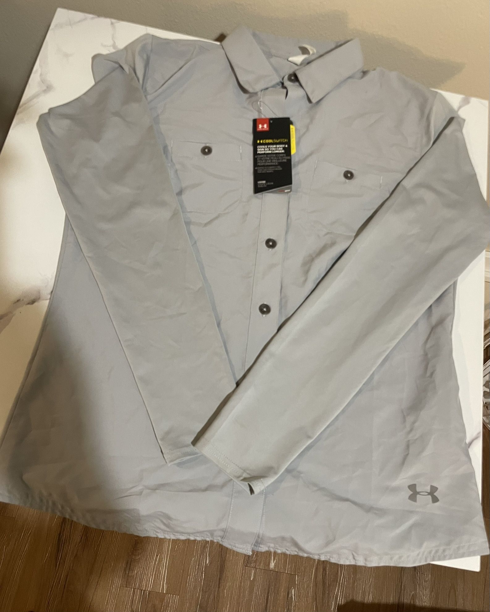 New w/tag (MSRP $64.99) Women’s sz S loose fit button up long sleeve Heat Gear shirt with Cool Switch technology Pickup Pearl/ cash only