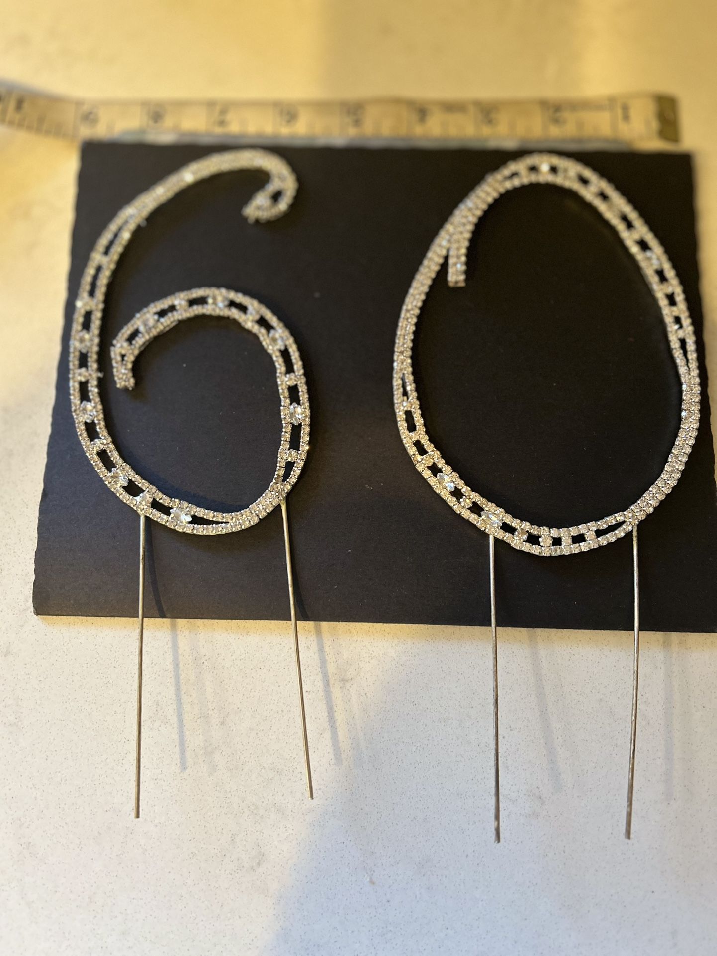 Elegant rhinestone “60” cake topper perfect for a 60th birthday celebration. The sparkling design adds a beautiful touch to cakes, dessert tables, or party centerpieces.