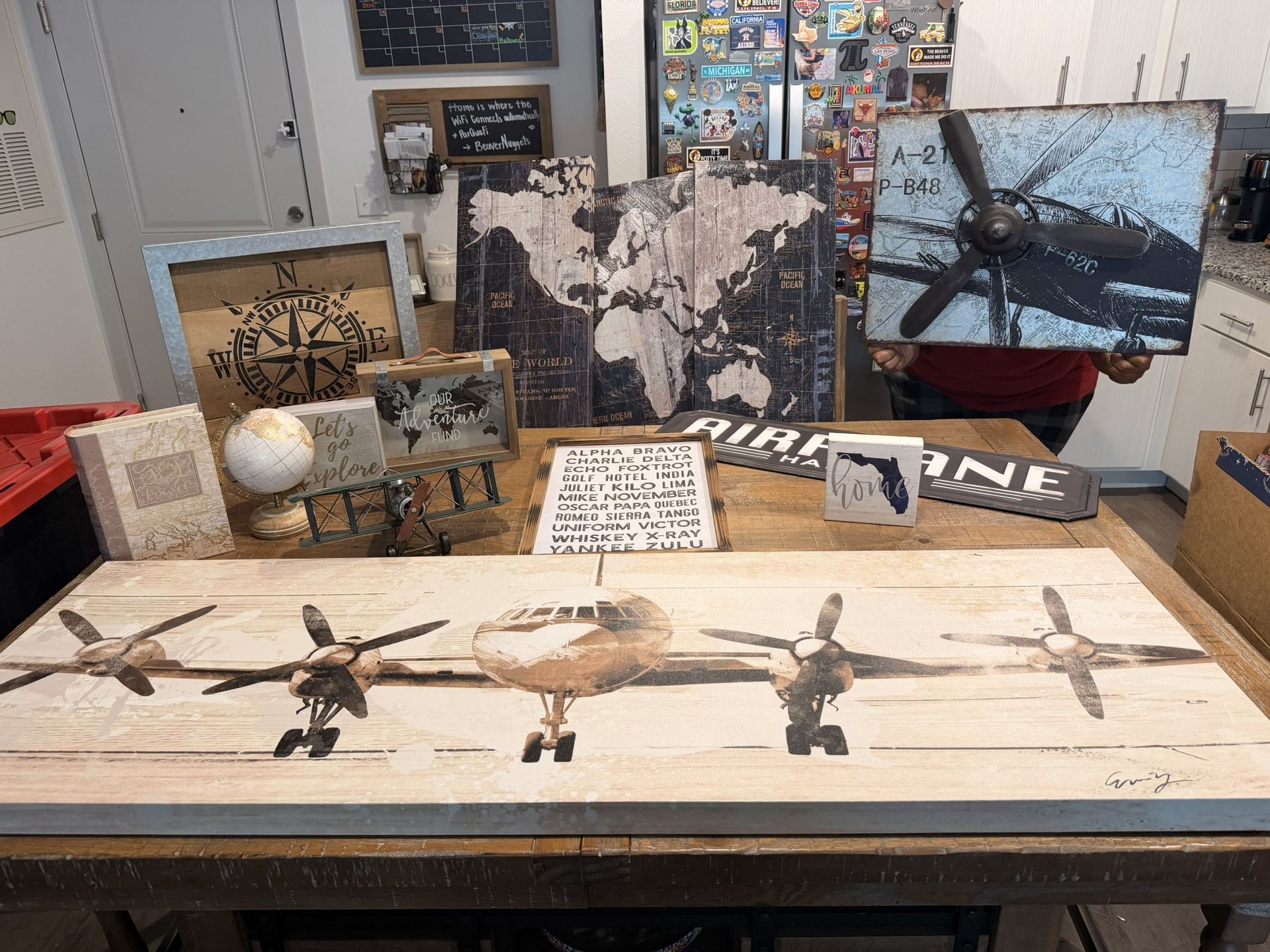 Give your space a unique aviation touch! Selling a stylish set of aviation-themed décor pieces that look great in offices, living rooms, man caves, kids’ rooms, or pilot lounges. Included: • Metal airplane wall art • Vintage-style aviation map print • Small decorative airplane model 💰 Price: $150 OBO 📍 Pickup: Target off of 429 & 192 - 3200 Rolling Oaks Blvd, Kissimmee, FL 34747) Message me if you want more photos or are interested. ✈️