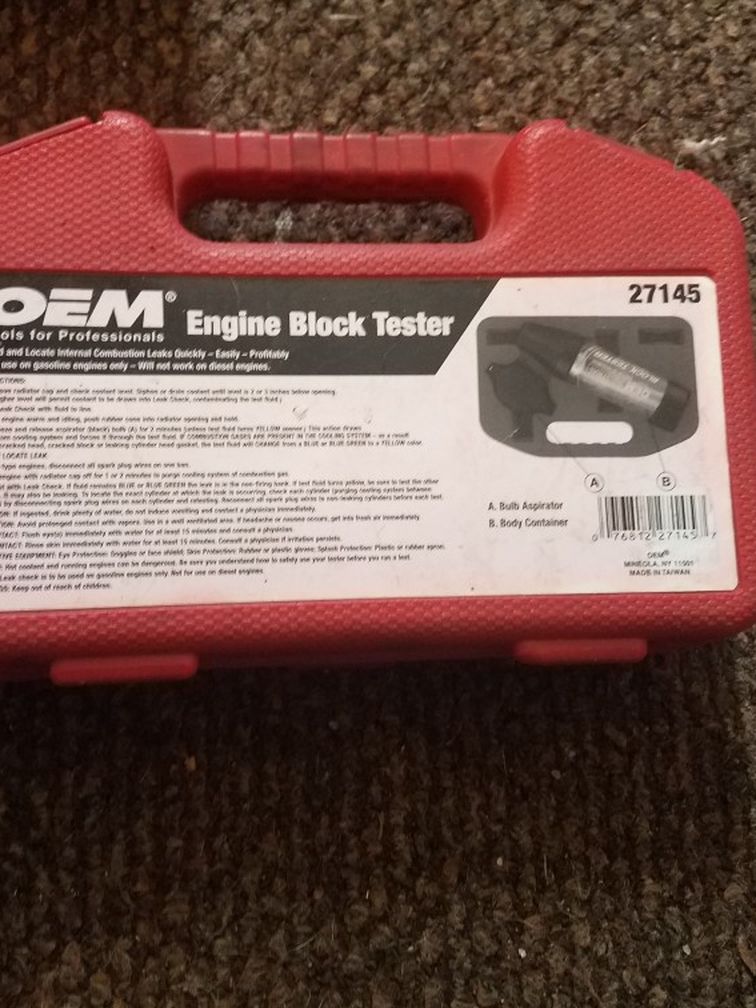 Oem engine block leak detector finds leaks in coolant for overheating motors. And please dont hit me with the send me a code back thanks for your time