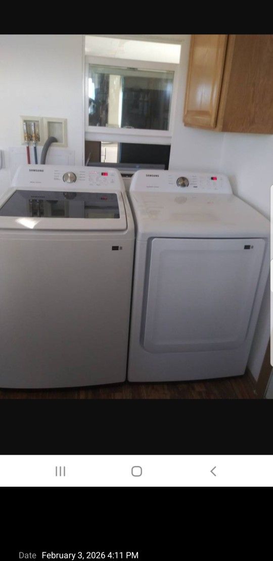 Samsung Washer and Electric Dryer only 1 year old. 6 months lightly used by 76 years old father in law. But has passed. Used maybe 1 load aweek. Bought new middle of last year 2025. He paid around $1200 for them asking $575 OBO just setting taking up room. Both in perfect working condition inside and out. A beautiful set. CASH ONLY IN PERSON ONLY. If interested or have any questions please call or text me. Delivery and Install and haul away available. Thank you for looking and have a great day :)