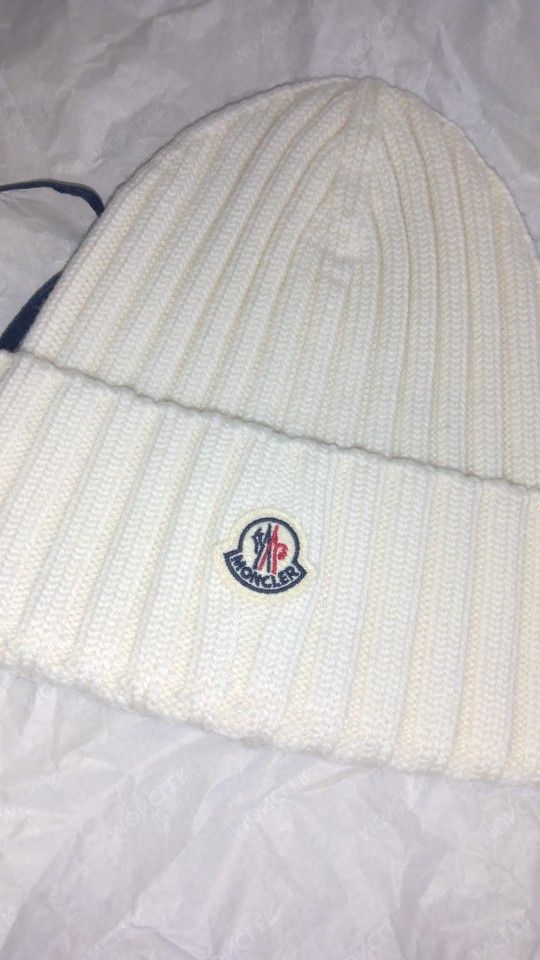 Cream White Moncler Beanie, Less Than 2 Weeks Old, Bought At Moncler Store On Oak Street, Can Scan The QR Code For Authentication, ONLY WORE ONCE For An All White Party, (BRAND NEW) Close To $400 With Tax, $250 It's Yours✅