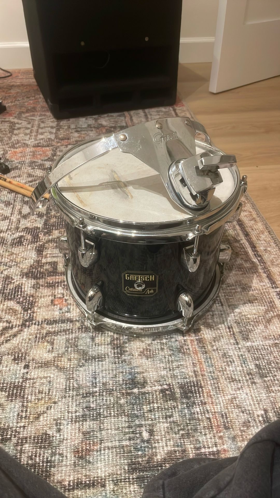 Great quality drum in excellent condition. Just some wear on the drum head. Comes with mounting hardware, which is missing a few grommets.