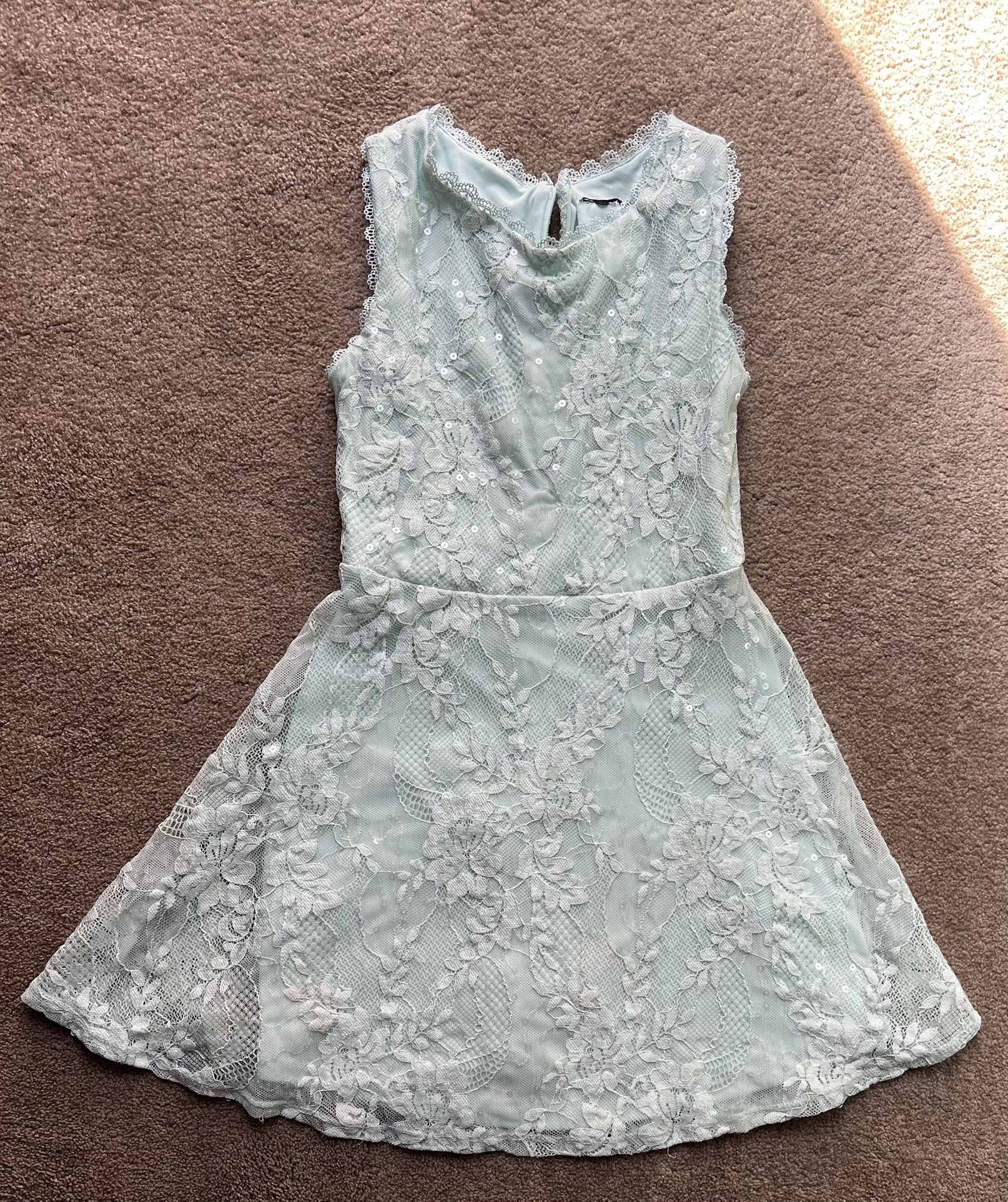 Girls teal sequin dress size 6 Tag was removed Small stain at bottom as shown in pic Chula Vista