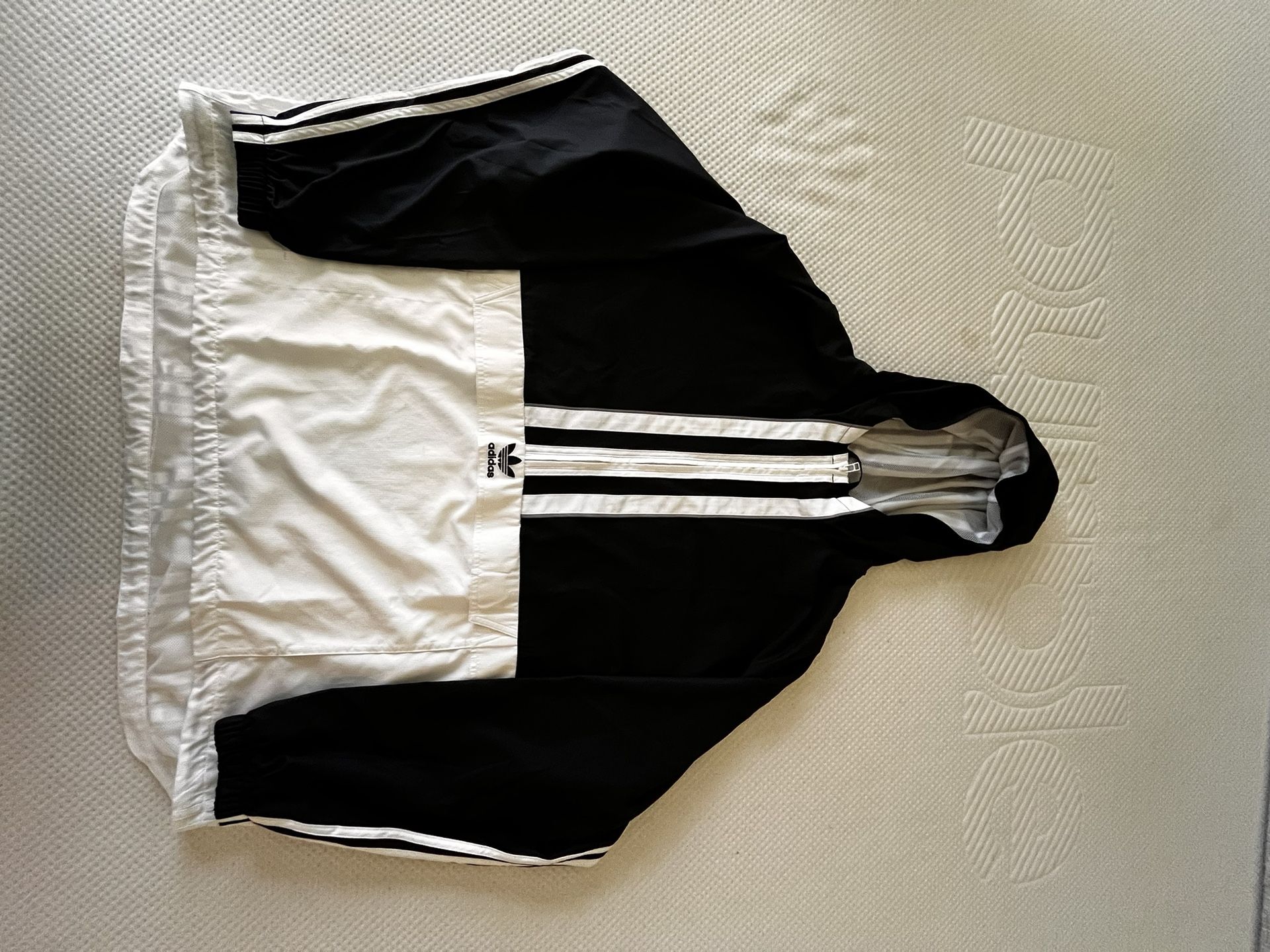 Step back in time with this vintage black and white Adidas windbreaker, a timeless piece that combines classic style with practical function. Crafted with the iconic Adidas quality, this windbreaker features the signature three-stripe design along the sleeves and the trefoil logo proudly displayed on the chest. The lightweight, durable fabric is perfect for any season, offering protection from the elements without sacrificing comfort. Whether you're an avid collector of vintage sportswear or simply seeking a stylish, retro addition to your wardrobe, this Adidas windbreaker is a must-have. Embrace the nostalgia and elevate your look with this iconic piece of athletic heritage.