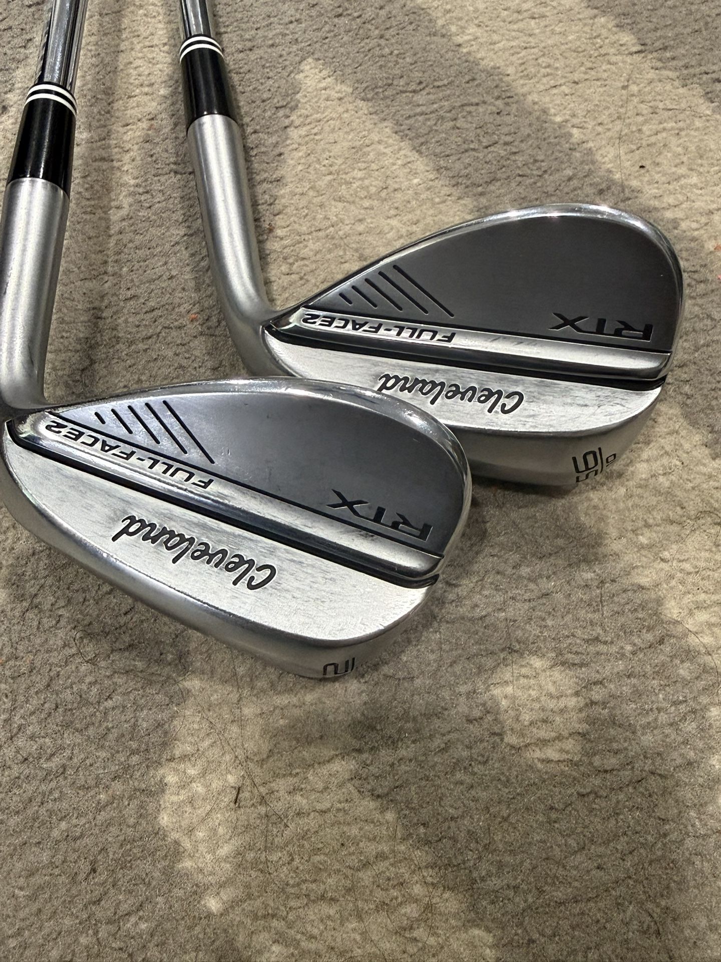Cleveland rtx full face 2 wedges in 52 degrees and 56 degrees. In great condition. You can see the grooves are in great shape. The grips feel almost new. $80 each