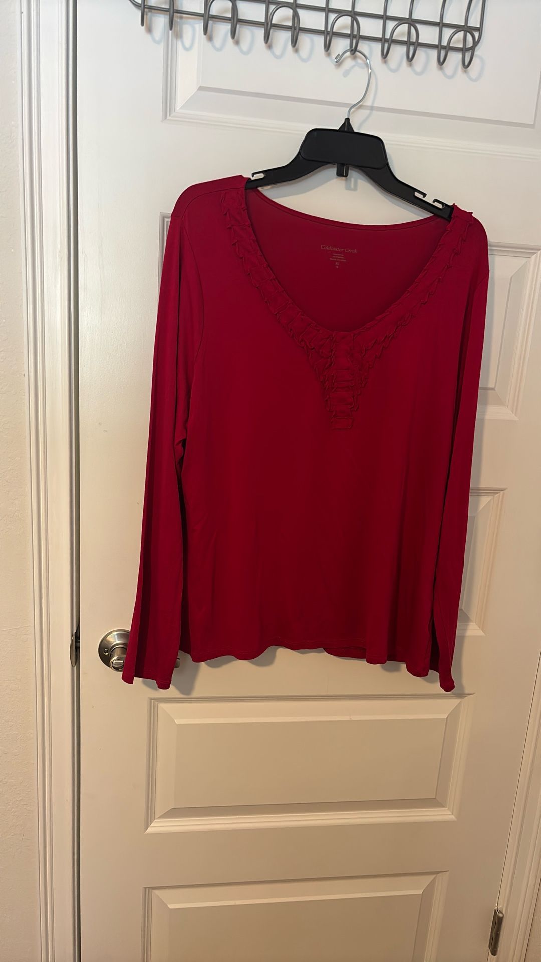 Red V-neck, lace collar, red, long sleeves size, extra large new without tags