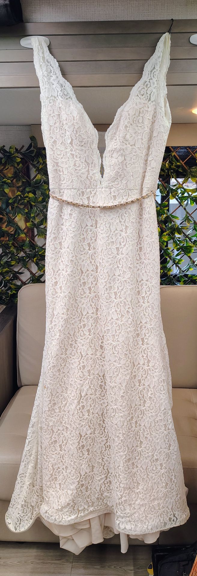 ✨ Mikaella Bridal Wedding Dress – Size 10 – Made in Canada ✨ Beautiful authentic Mikaella Bridal gown, size 10, professionally made in Canada. High‑quality lace, deep V neckline, elegant train, and a delicate waist detail. Classic, flattering, and perfect for a modern or romantic wedding. Condition: Excellent. No rips, stains, or damage. Only worn once and stored carefully. Fabric: Polyester/nylon lace with full lining (see tag). Fit: Fitted bodice with flowing lace skirt and train. Style: Timeless, elegant, and extremely photogenic. Why it’s great: - High‑end designer (Mikaella by Blue Bird Bridal) - Hand‑cut and hand‑finished - Comfortable, lightweight, and easy to tailor - Lace pattern looks amazing in photos - Much cheaper than buying new Price: $350 OBO (Retail was well over $1,000) Pickup: Union Park / UCF area Cash or Zelle only