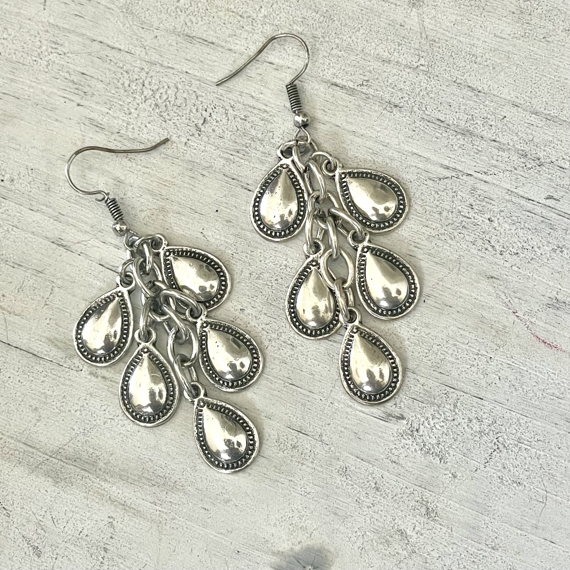 Silver tone Teardrop charm earrings Fish hook EUC Always open to reasonable offers Fast shipping Smoke and pet free home Bundle to save (the more you buy the bigger the discount ) Please see photos for details (they are part of the description) Happy to answer any questions Thanks for stopping by!