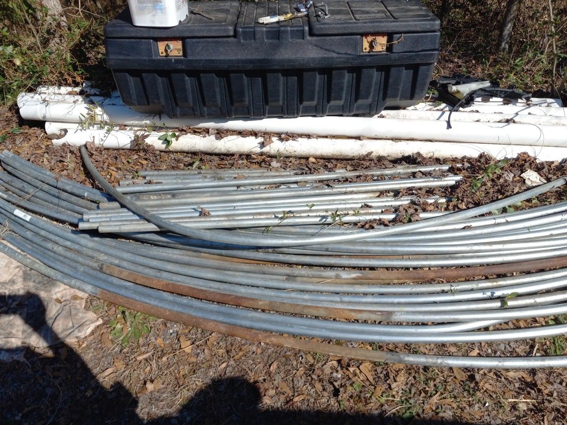 Tubing for green house 20 curved peices about10ft.long and 14 straight 5ft.long , a few are damaged must take all.