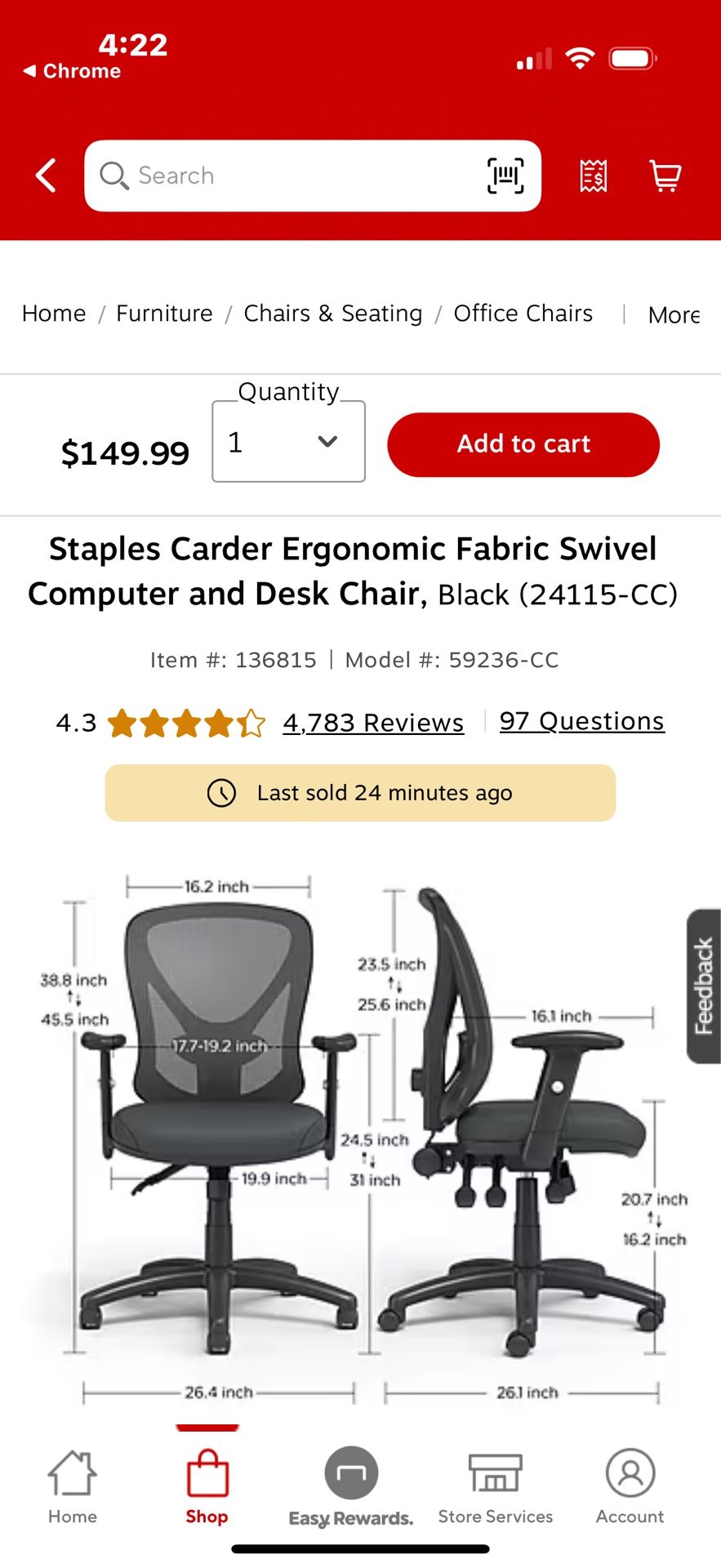 Staples Carder Ergonomic Fabric Swivel Computer and Desk Chair, Black