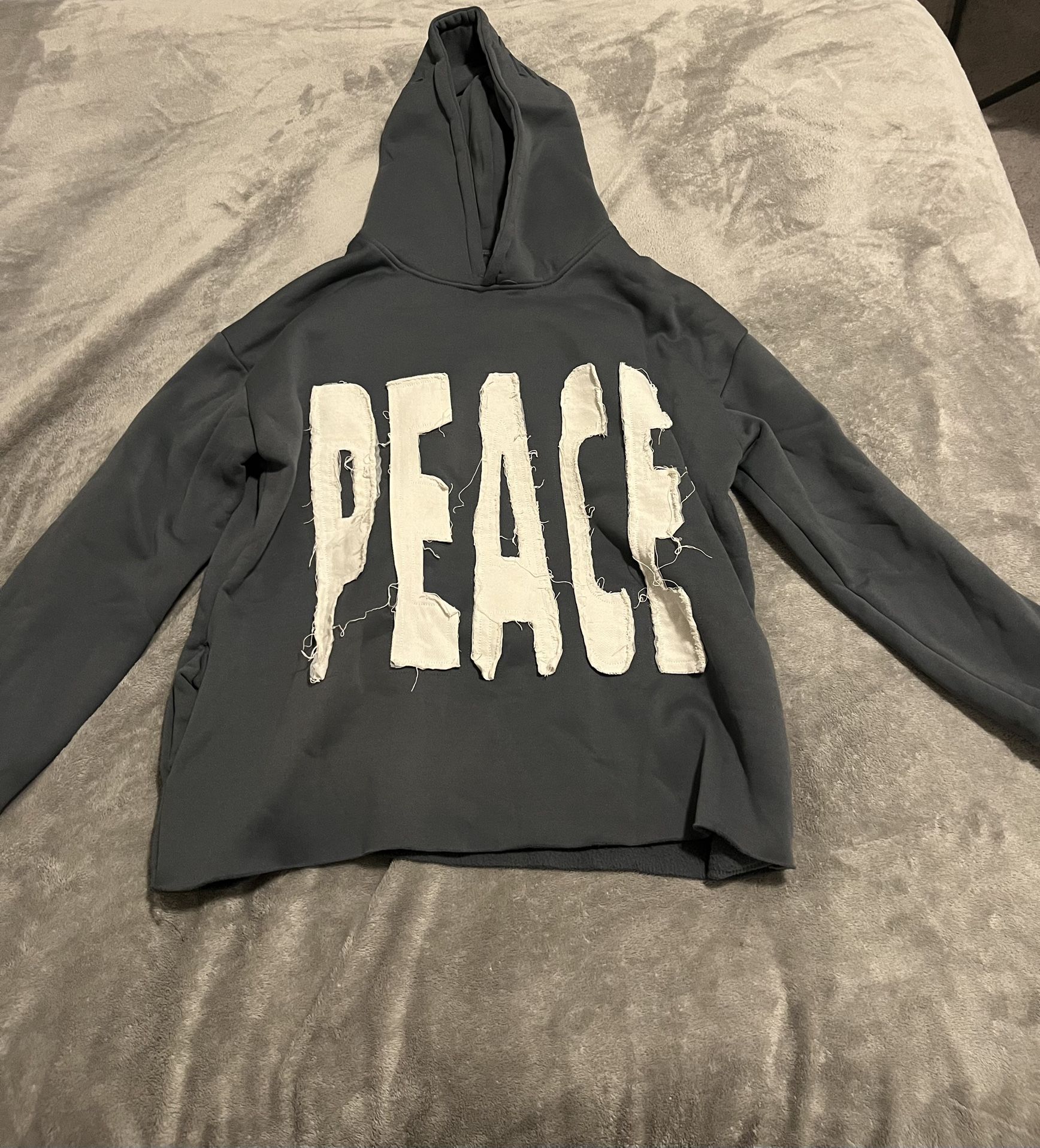 Gray and white cropped hoodie with "Peace" design #croppedhoodie