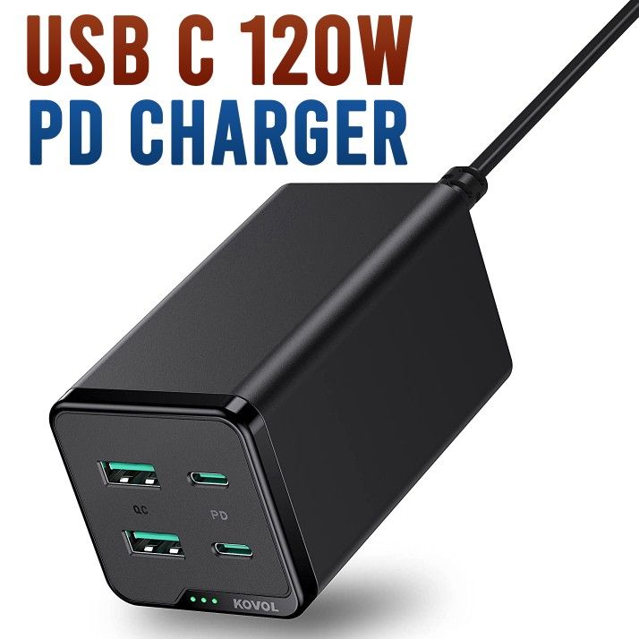 USB C Charger 120W 4-Port PD Fast Laptop Charger, Compact Type-C Charging Station, GaN Charger PPS Power Delivery