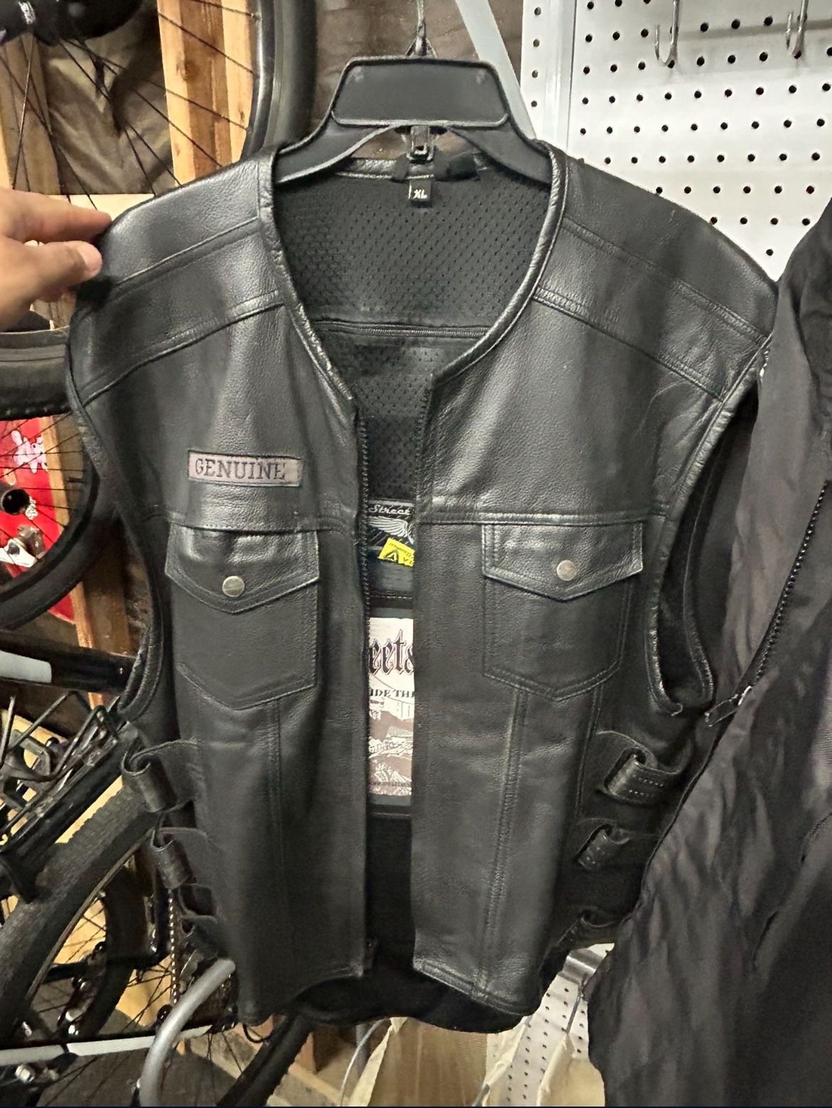 Cash only $200 Street & steel anarchy leather vest XL back protection in v Lmk if you have questions