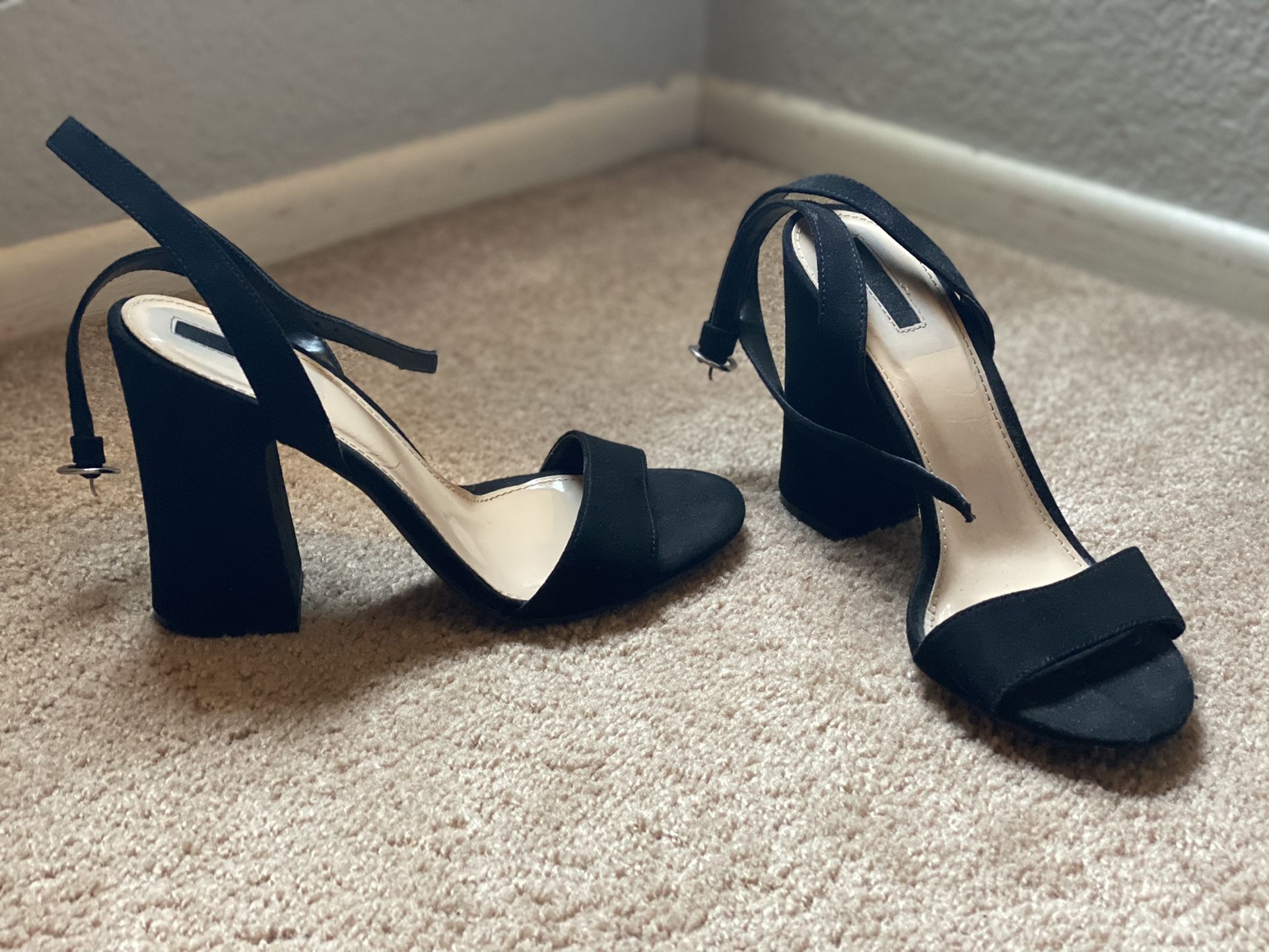 Very cute and comfortable heels. Only worn once. The heel is 3 inches.