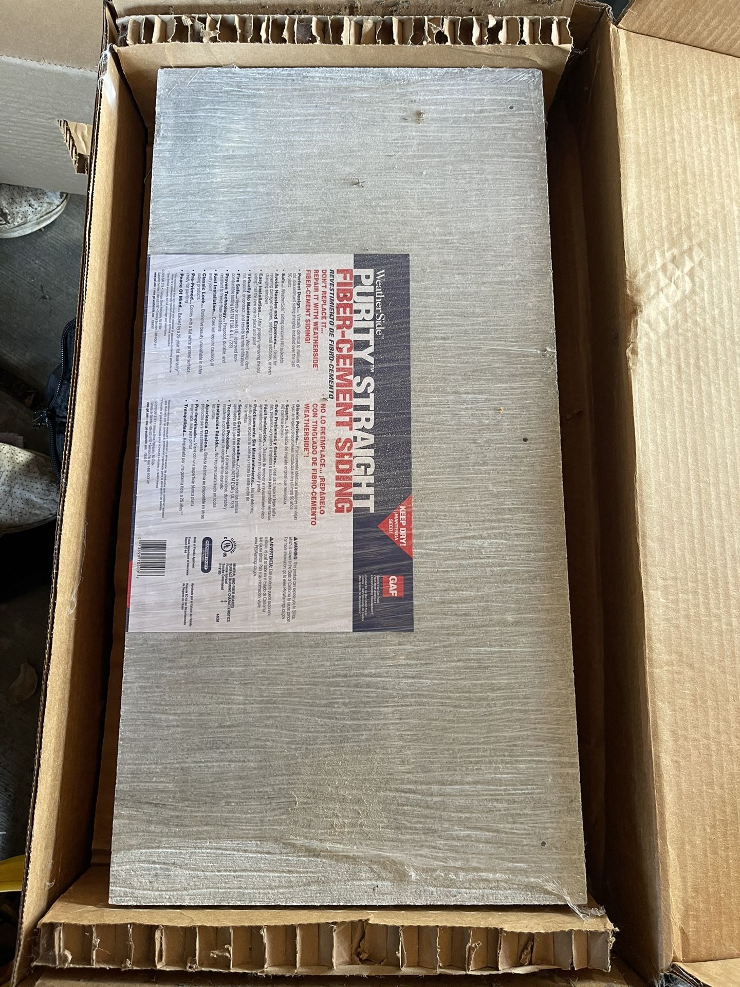 New -12 inches x 24 inch hardie shingles replacement old esbestos siding.. one box 18 pieces..3-boxes flat bottom, 1- box wave