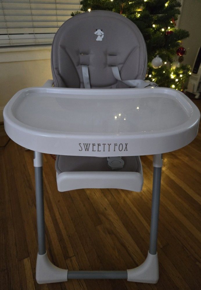 ... toy rack with toys and removable cover that goes on top of tray are missing. Sweety Fox high = adjustable with 5 positions for the reclining back, 3 for the footrest and 7 different heights for the seat. For babies and children up to 30lbs