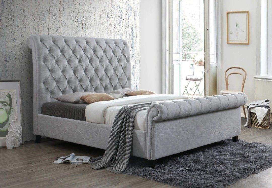 Kate Gray Upholstered King Sleigh Platform Bed