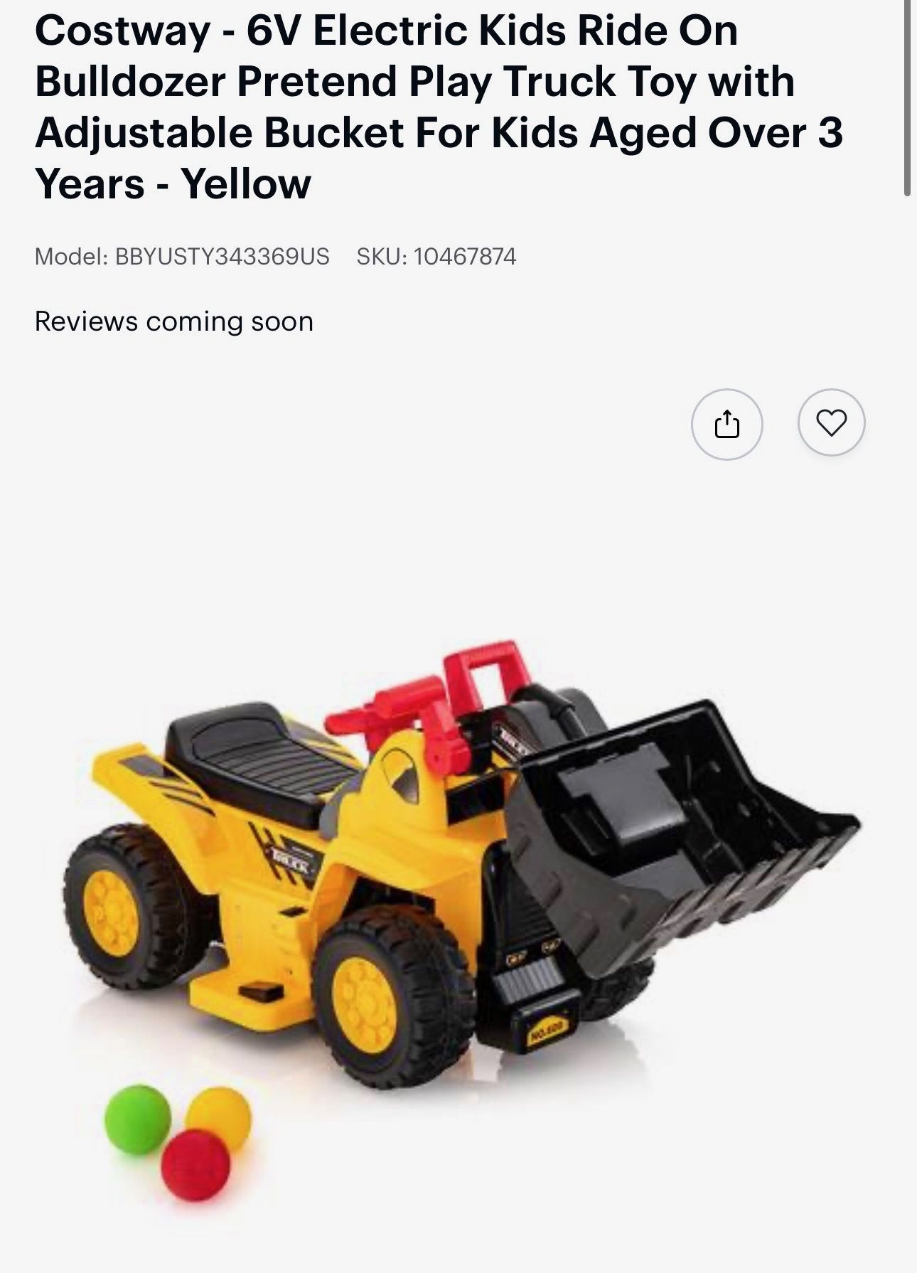 Costway - 6V Electric Kids Ride On Bulldozer Pretend Play Truck Toy with Adjustable Bucket For Kids Aged Over 3 Years - Yellow $50