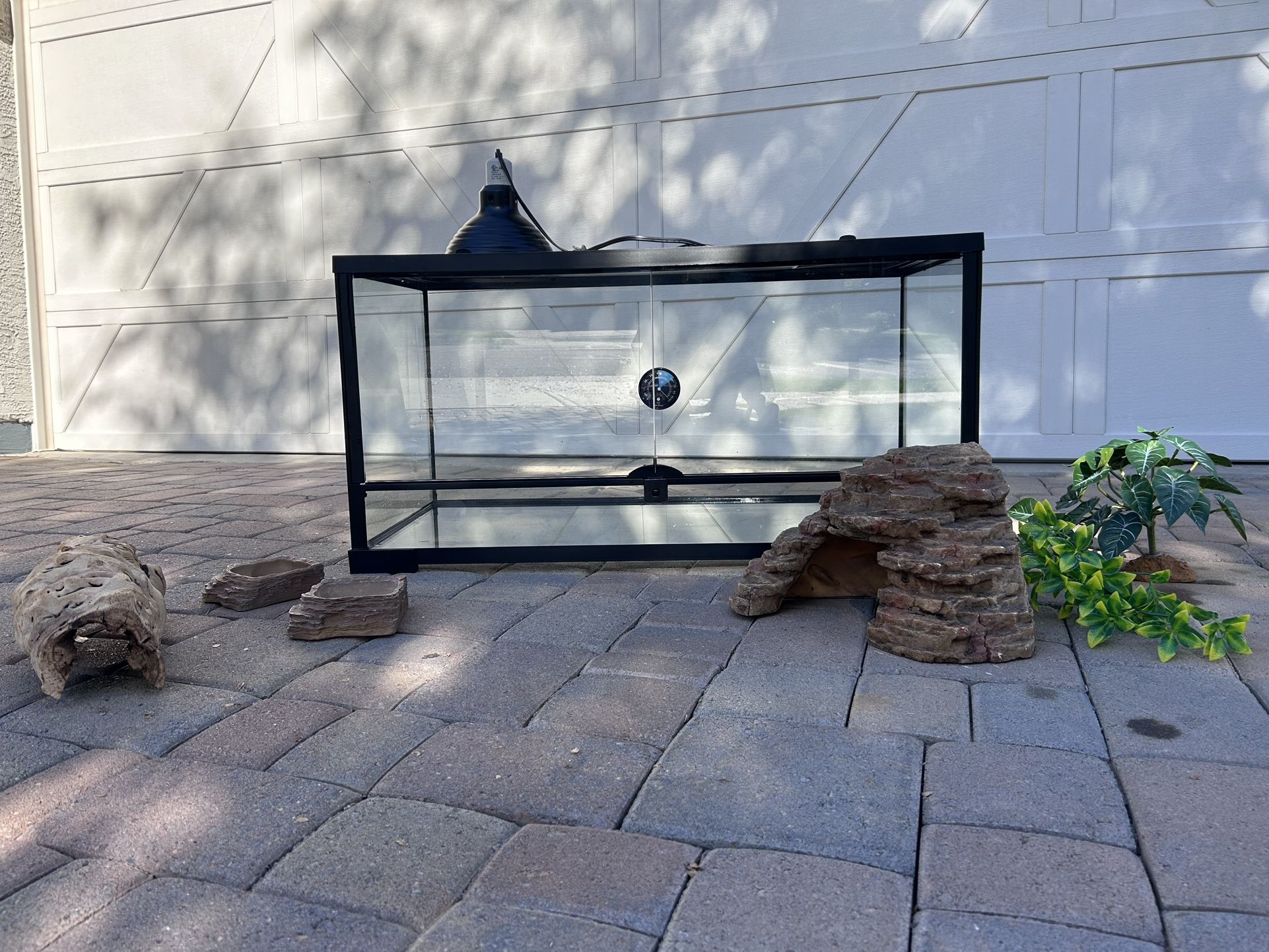 Terrarium 36 by 18. Comes with heat lamp and all accessories shown. All in excellent/new condition. Asking $100 OBO Cash only please Located in Gilbert. Higley/Elliot