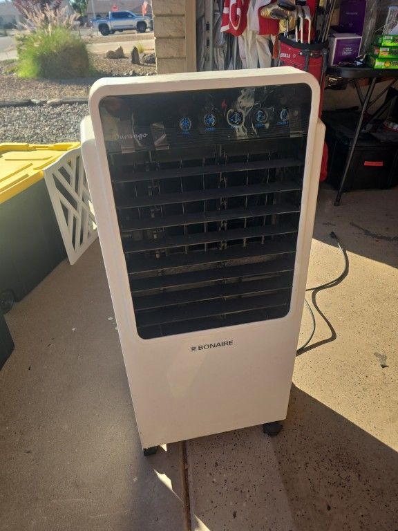 Brand new $100 Selling $50 Bonaire Portable Evaporative Air Cooler (Swamp Cooler) – Great Condition Stay cool without the high energy costs. This Bonaire portable evaporative air cooler is in good working condition and ideal for garages, patios, workshops, or dry-climate indoor use. It delivers strong airflow, multiple fan speeds, and cooling mode for added comfort during hot days. Features: Bonaire brand (reliable, well-known evaporative cooling) Multiple fan speeds Cooling mode + fan-only option Easy-to-use digital control panel Portable with rolling casters Energy-efficient alternative to AC Ideal for Arizona / dry climates Condition: Used, clean, and fully functional. Normal cosmetic wear from use, nothing that affects performance.
