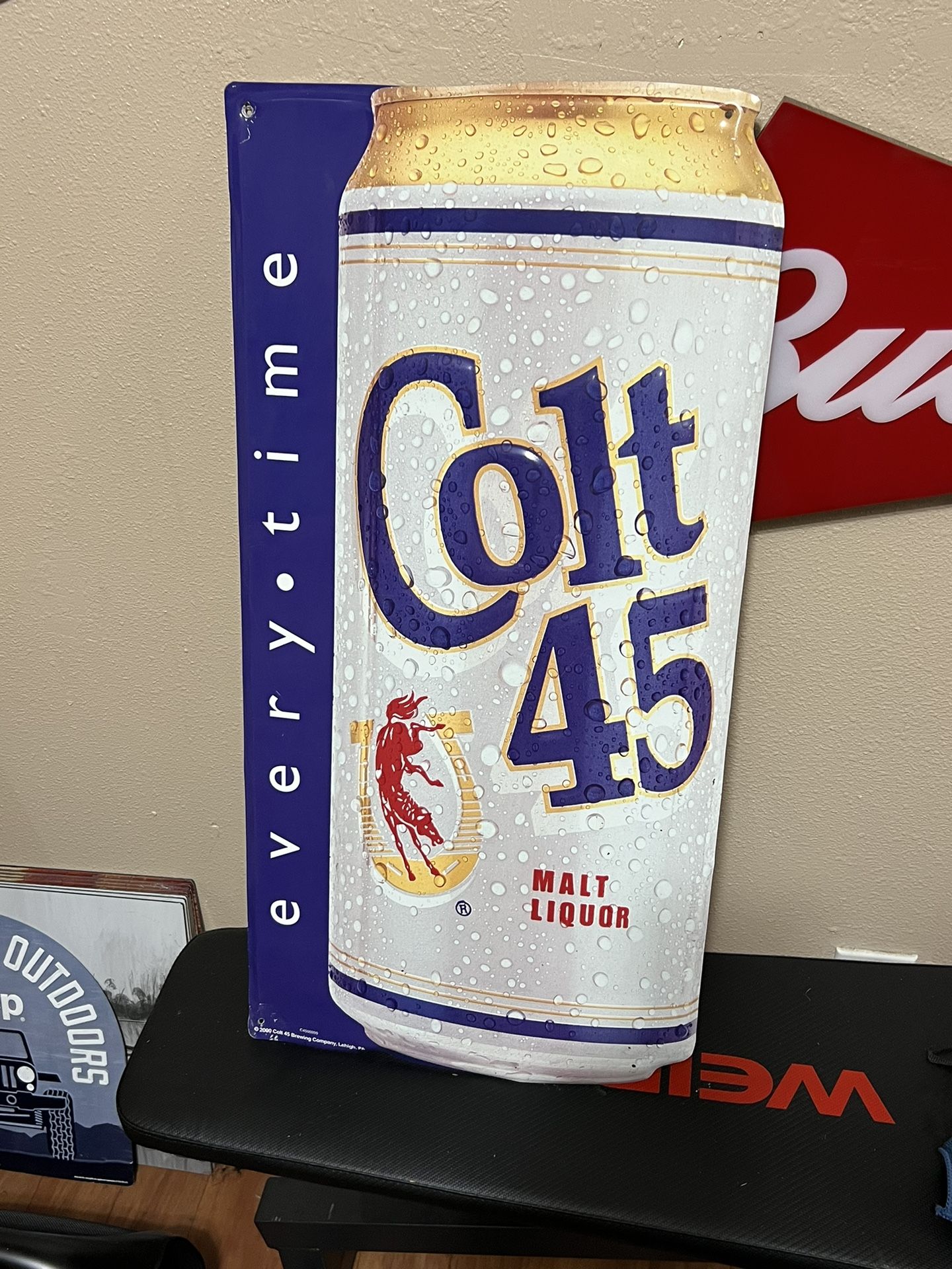 LARGE VINTAGE COLT 45 BEER METAL SING RARE