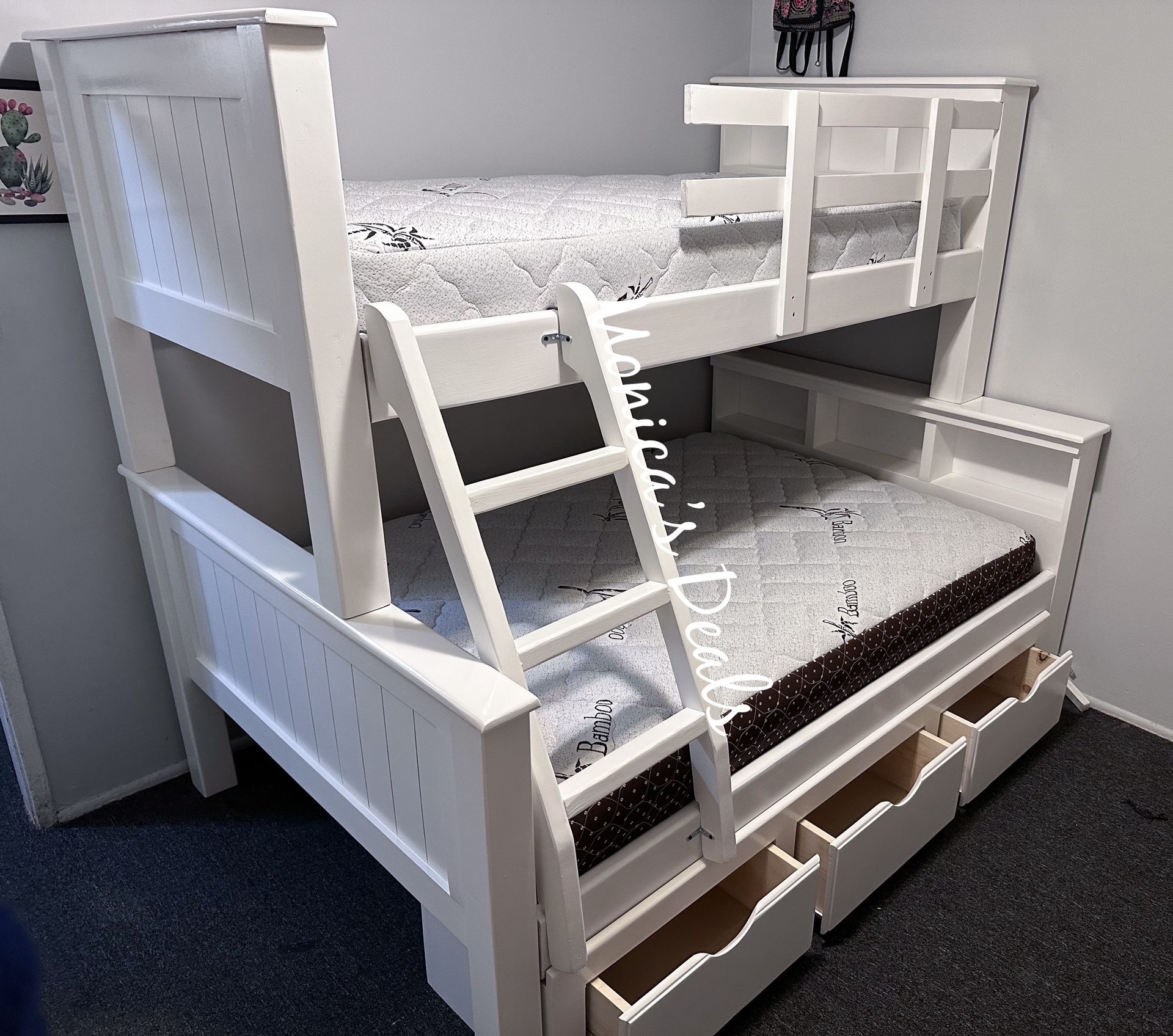 Solid Wood Twin/Full Bunk Bed With 3 Drawers And Both Mattresses $1,080