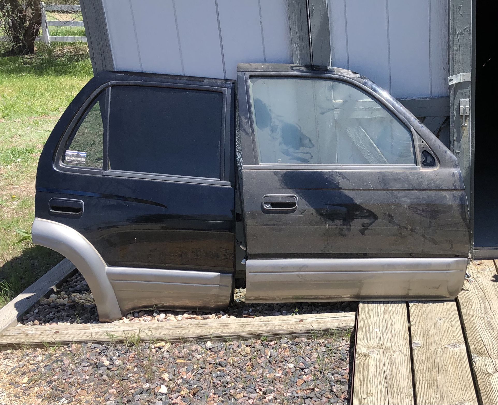 3rd Gen 4Runner (1(contact info removed)) doors and fender. Passenger side front fender, front passenger door, and rear passenger door. Doors are black, used. Fender is new, painted. Has access for fender flare attachment. $100 for each door and fender($300 total) will separate
