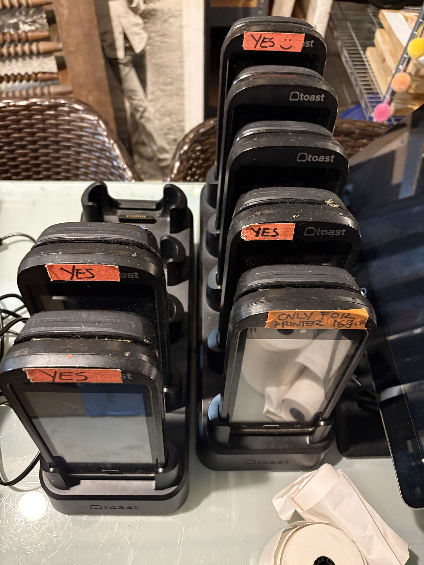 Toast terminals x7 KDS x 2 (22”) Kitchen Printers Handhelds version 1 and 2 Credit card swipe Power conditioners Network Switch Toast Meraki Router As is, please take it all! Amazing deal. Best offer please.