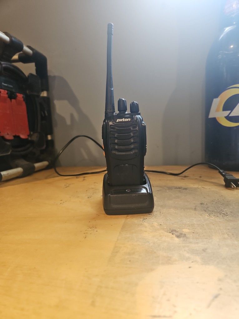One walkey works great comes with 16 channels, and charger. i have 2 chargers and a second walkey talky.