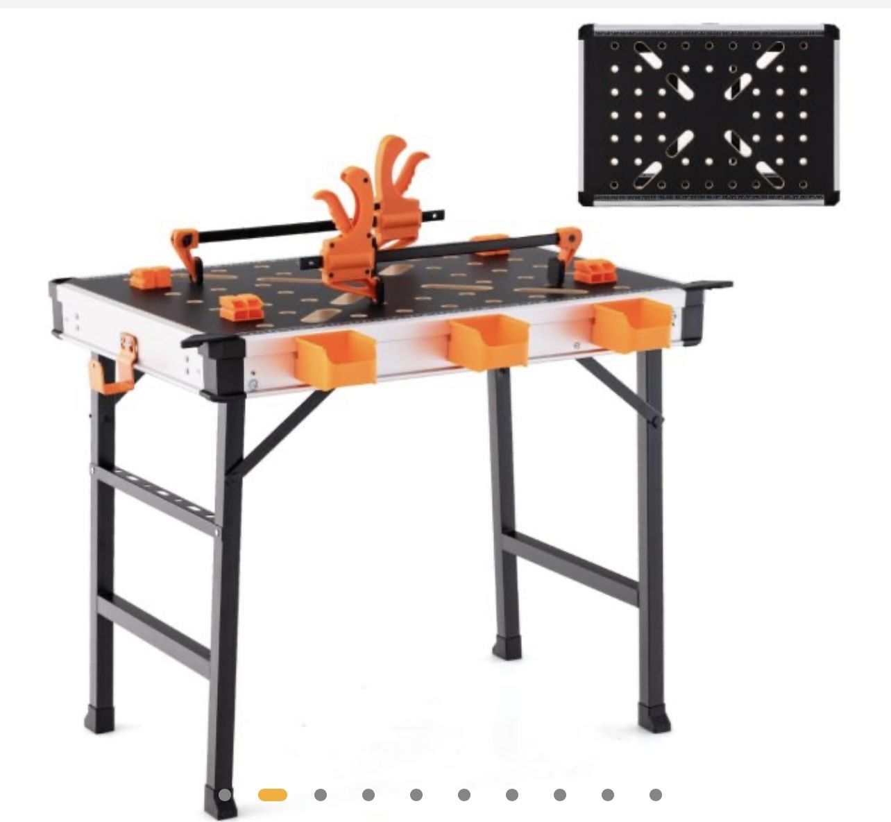 VEVOR Folding Work Table, 2-in-1 as Sawhorse & Workbench, 1000 lbs Load Capacity, Steel Legs, Portable Foldable Tool Stand with 2 Wood Clamps, 4 Bench Dogs, 3 Tool Boxes, 2 Hooks, Easy Garage Storage