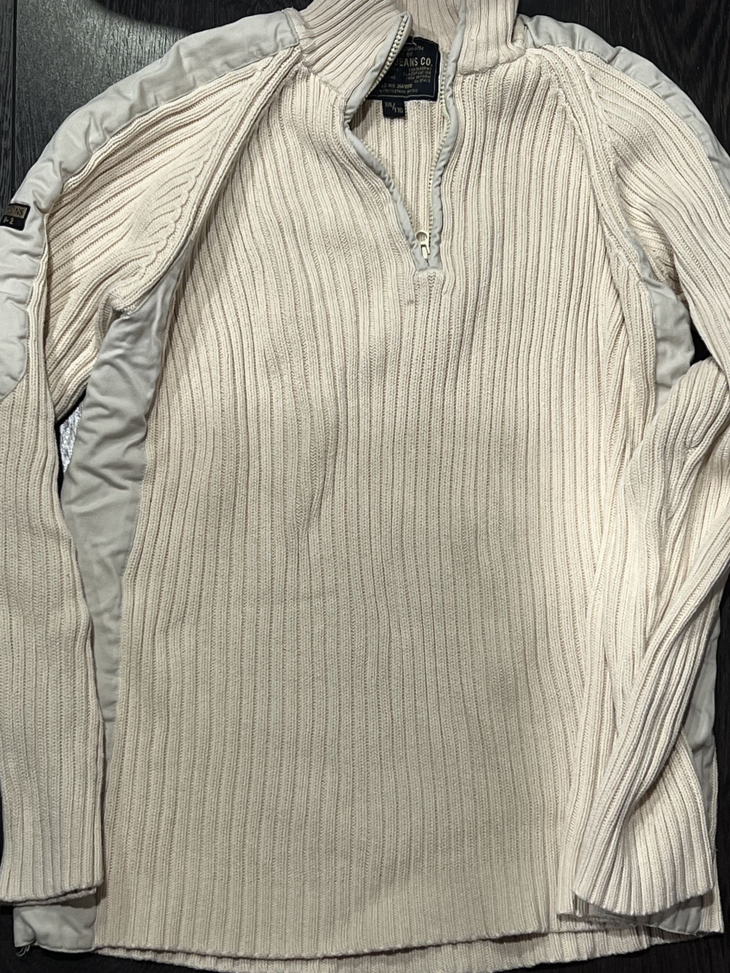 MEN'S NAUTICA 1/4 Zip Cream long sleeve sweater XXL padded elbows & shoulders