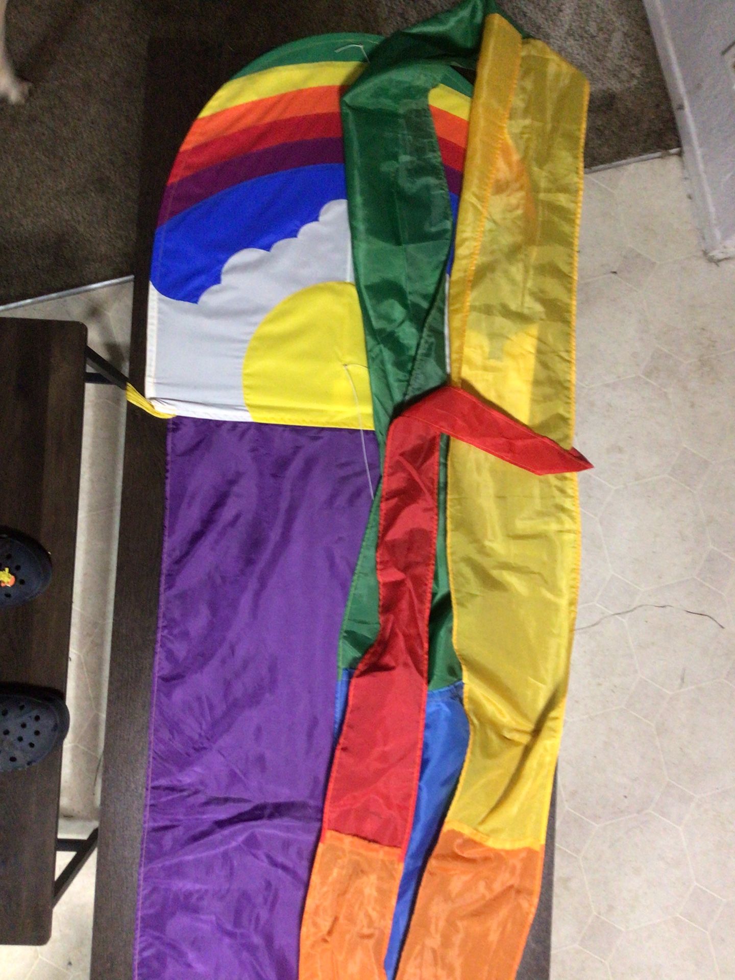Beautiful vintage White Bird Kites single-line kite, handmade in Kamuela, Hawaii. Classic rainbow, sun, and cloud design with long colorful tails. High-quality fabric and stitching—this is not a modern mass-produced kite. Includes: • Original White Bird Kites kite • Long detachable tails • Wooden spool with line Condition: • Pre-owned vintage condition • Fabric is vibrant and intact • No major rips or tears • Shows normal wear consistent with age White Bird Kites are known for craftsmanship and durability. Great for flying, wall display, or a vintage kite collection. Asking $85 OBO Local pickup preferred. Message me with any questions or for more photos.