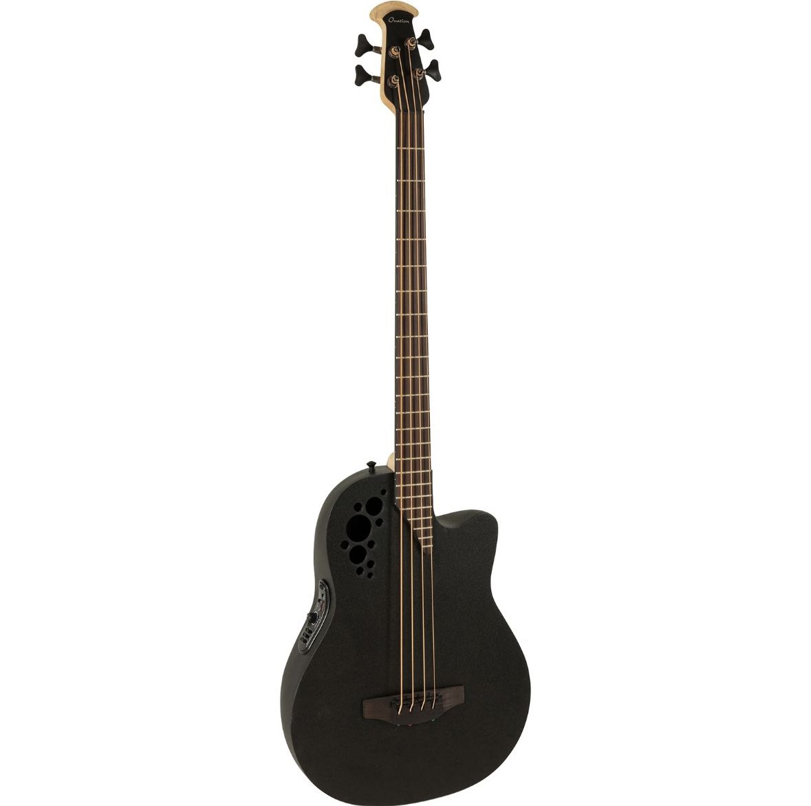 Ovation Electric Acoustic 4 string bass in excellent condition. Plays great low action, no buckle rash or scratches, like new condition. Comes with a gig bag and extra set of strings.. Used sold as is, cash only, no refunds. No shipping, local pick up only. Low-End Magic: Ovations 4-string bass guitar features a solid-spruce top with scalloped X-bracing for superior note definition, and its classic Mid-Depth cutaway composite body delivers balanced acoustic tone and is comfortable to hold and play. Soundports on the bass-string side of the instrument enhance lower-frequency projection. The bass also features a satin-finished maple neck and a black-stained rosewood fretboard. Assuring correct string tension and intonation, a full 34 scale delivers harmonically rich timbres across the instruments entire range. With its onboard compressor, the OP-Pro Studio preamp provides control over the attack and sustain of every note. Textured black finish.