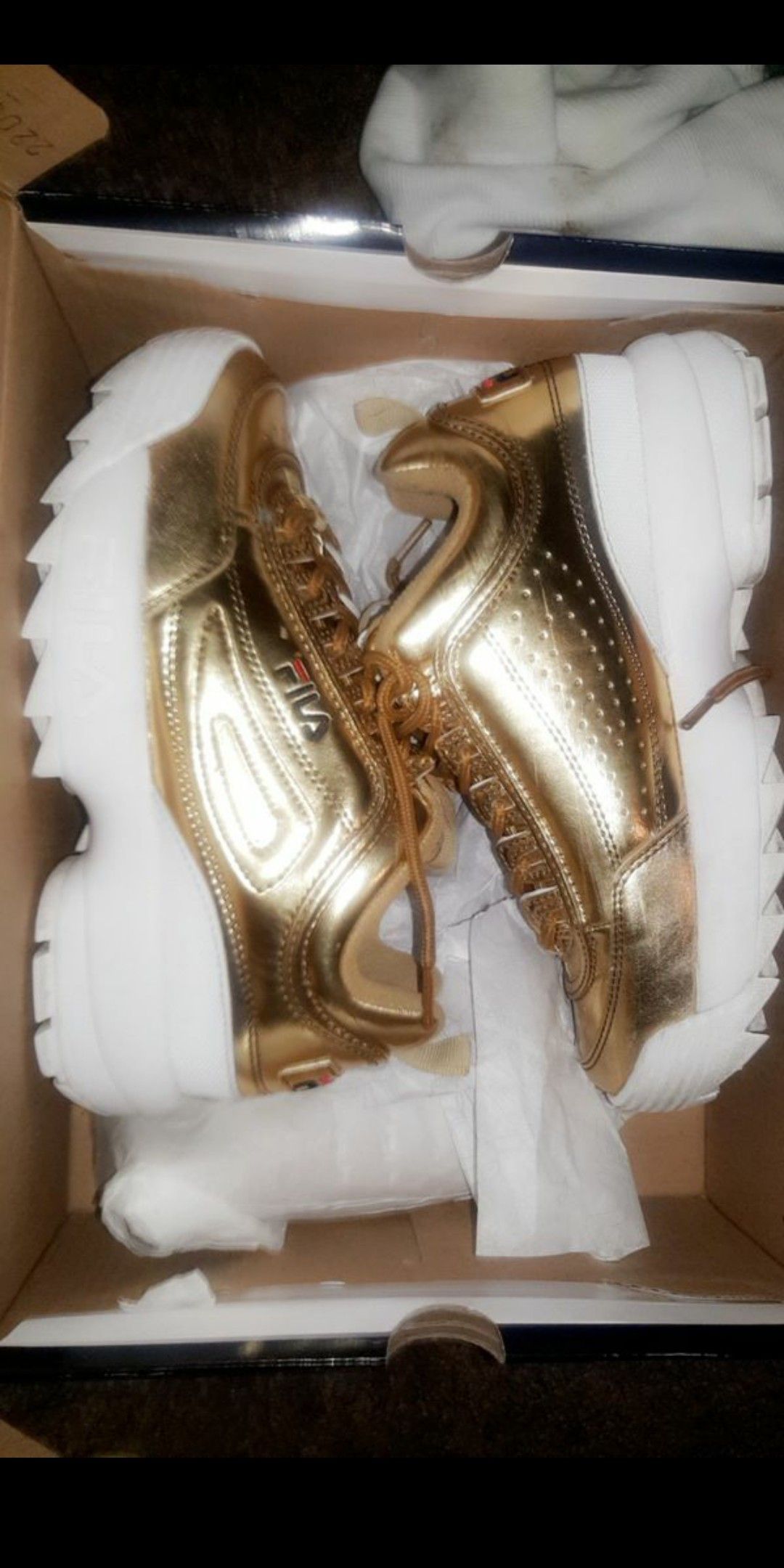Gold and White Filas w/orginal Box