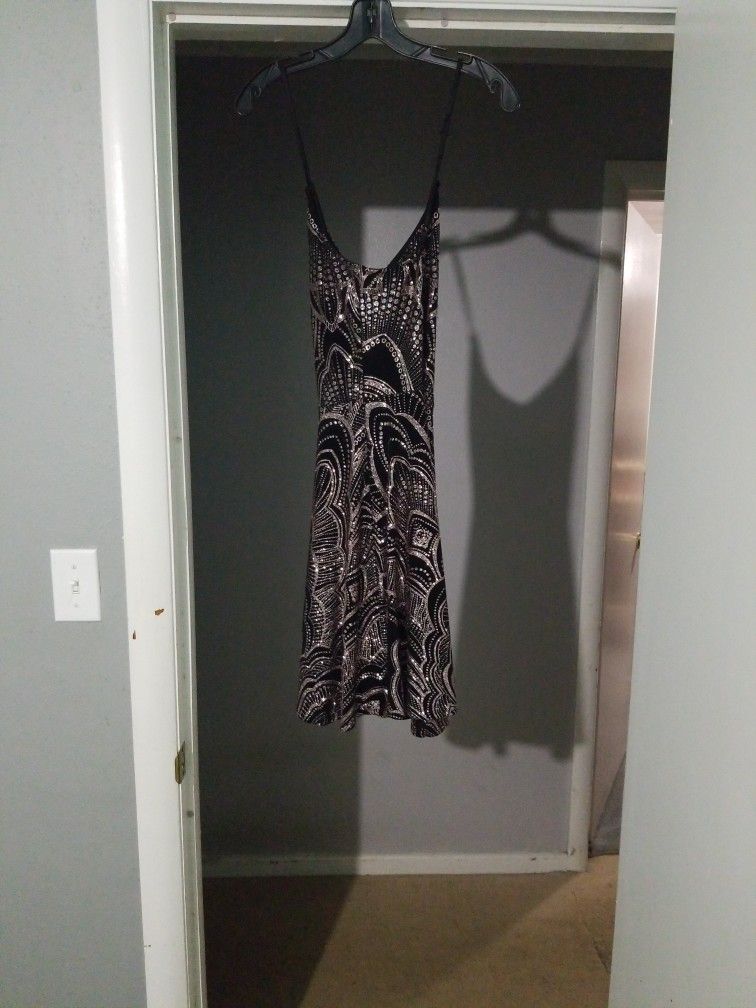 Medium... semi-formal prom homecoming dress. Black with rose gold sparkles. Worn for maybe 2 hours.