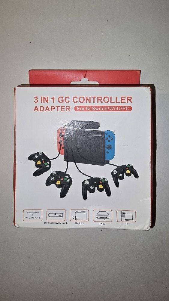 Take your Super Smash Bros. experience to the next level! This 3-in-1 GameCube Controller Adapter lets you plug in up to 4 original GameCube controllers for a classic and competitive gaming feel. Works seamlessly with Nintendo Switch, Wii U, and PC—perfect for retro game lovers and Smash players! 🔧 Features: Compatible with: Nintendo Switch, Wii U, and PC (via USB) Plug & Play: No drivers needed for Switch and Wii U Supports up to 4 GameCube controllers Great for Smash Bros. and retro titles Switch between Wii U/PC mode easily via switch on the adapter 📦 Condition: Box is slightly worn, but item is new/like new (never heavily used) All ports tested and working --- 🎁 Includes: 1x GameCube Controller Adapter Original box