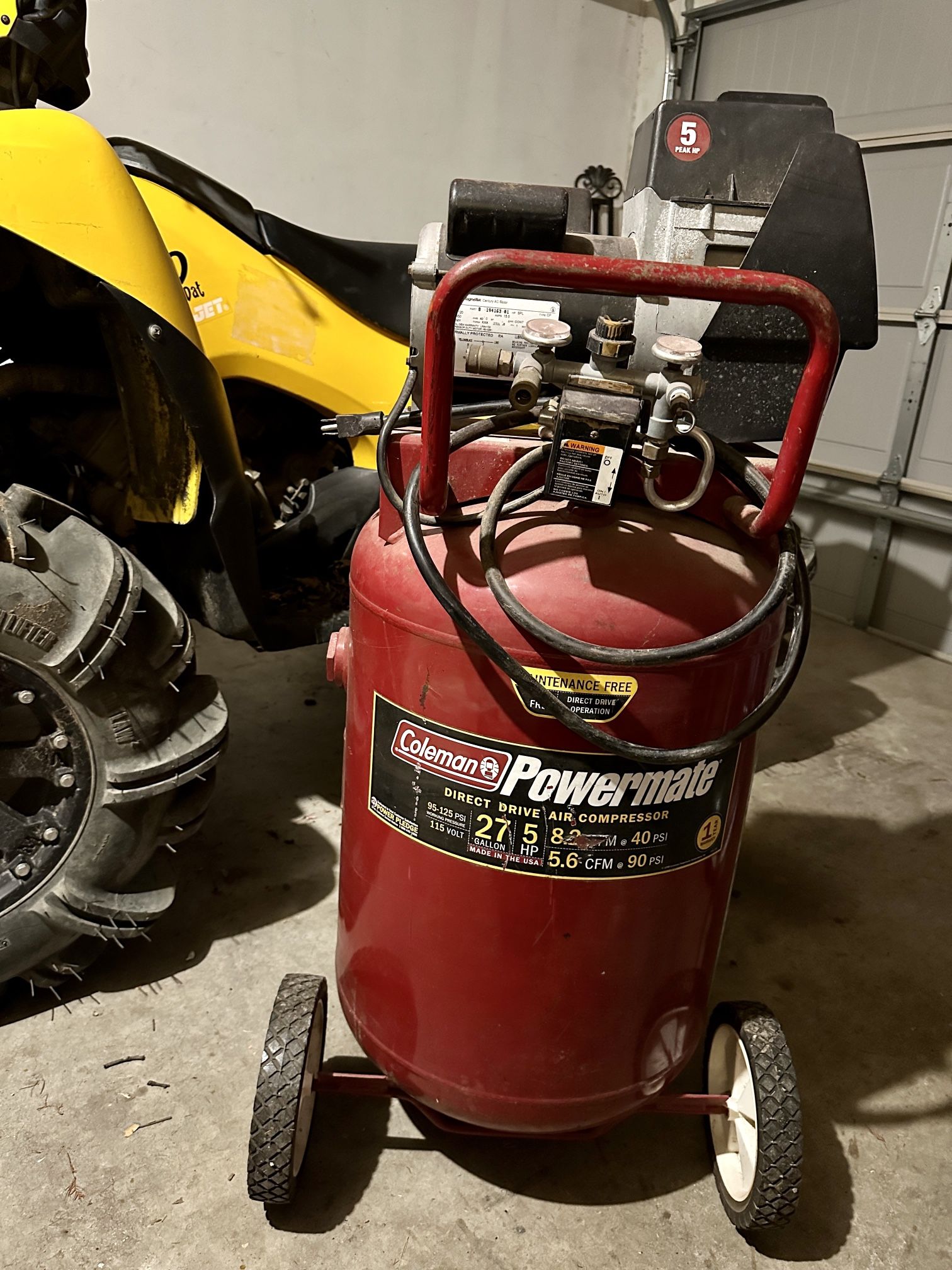 Coleman Powermate direct drive air compressor 115 volt 95-125 PSI 27 Gallon 5 HP