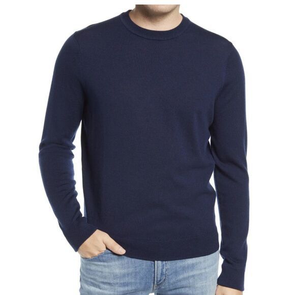 Mint condition Nordstrom Men's Shop Merino Blend Crewneck Sweater Top Sweatshirt Long Sleeve Navy Blue Men's Size XXL Extra Large Lightweight. Please see my other listings. Thank you