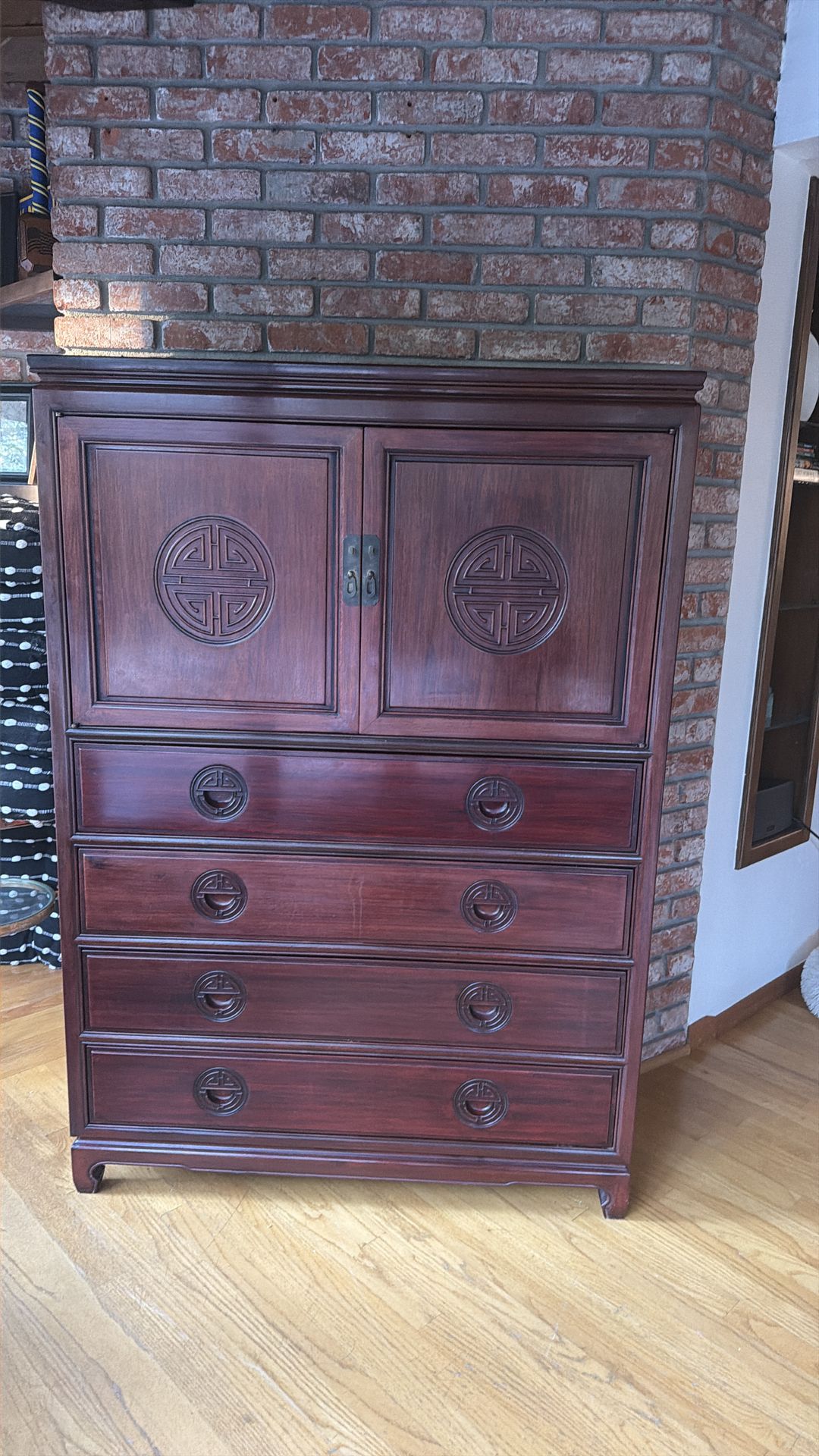 60x42x19 Asian dresser. Fantastic condition. 3 small drawers and 4 larger ones. One adjustable/removable shelf. Can be used for clothing, office supplies, crafts and more! Must pay cash and haul away yourself.