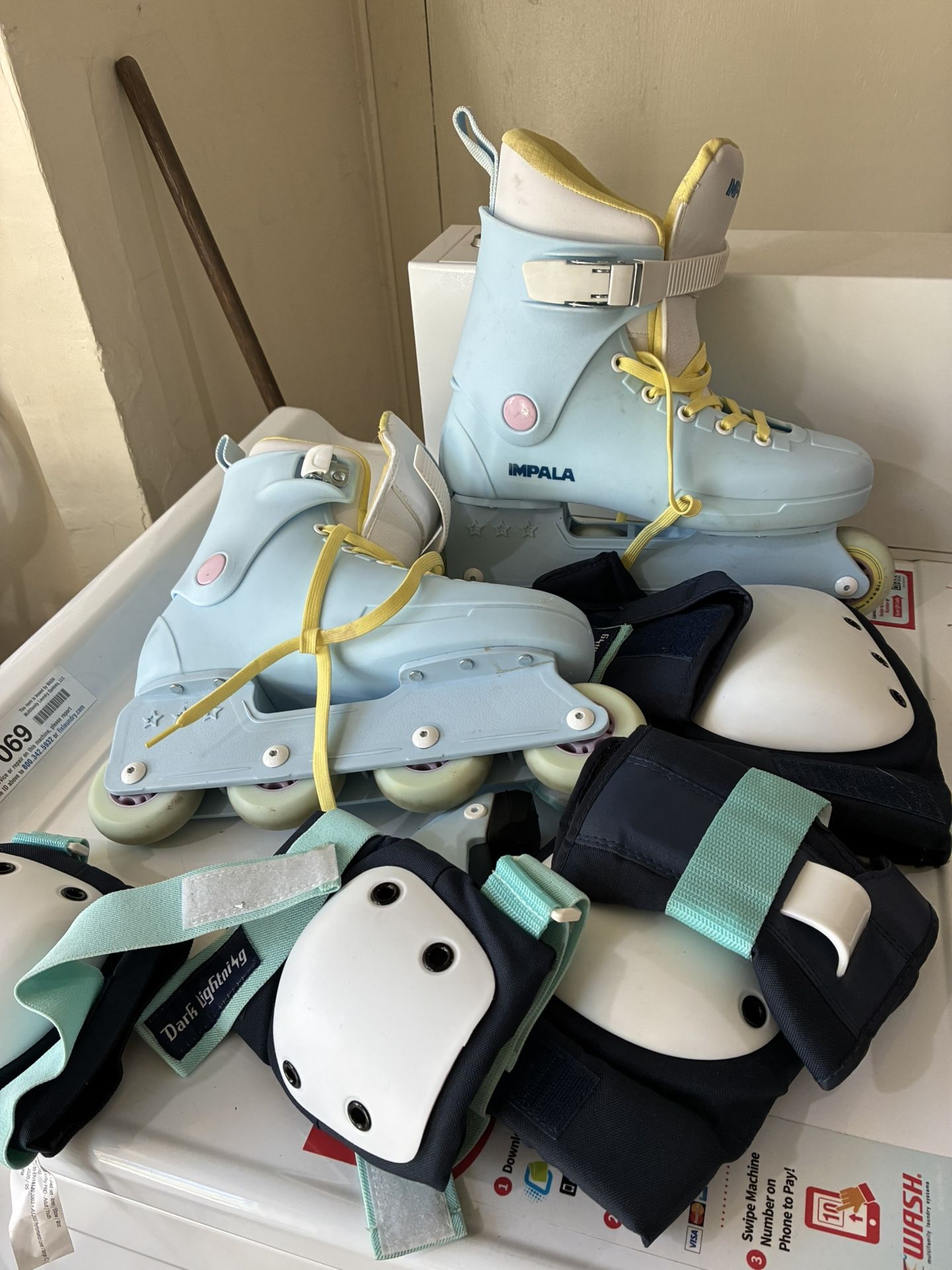Women’s 9. Worn once for about 10 minutes and realized inline skating wasn’t for me. lol. Parting for $80. Price negotiable. New $166. They’re pretty much BRAND NEW and I’m throwing in free elbow and knee pads! They’re very fun and cute I just have no coordination 😹